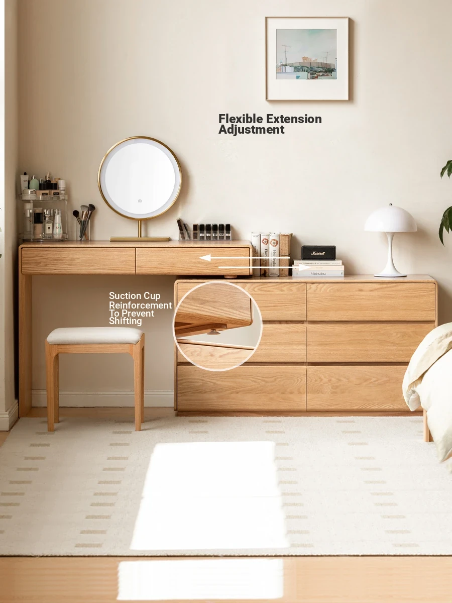Genji Wooden Simple Oak Dressing Table with Integrated Storage - Stylish Makeup Vanity and Expandable Dresser for Your Bedroom
