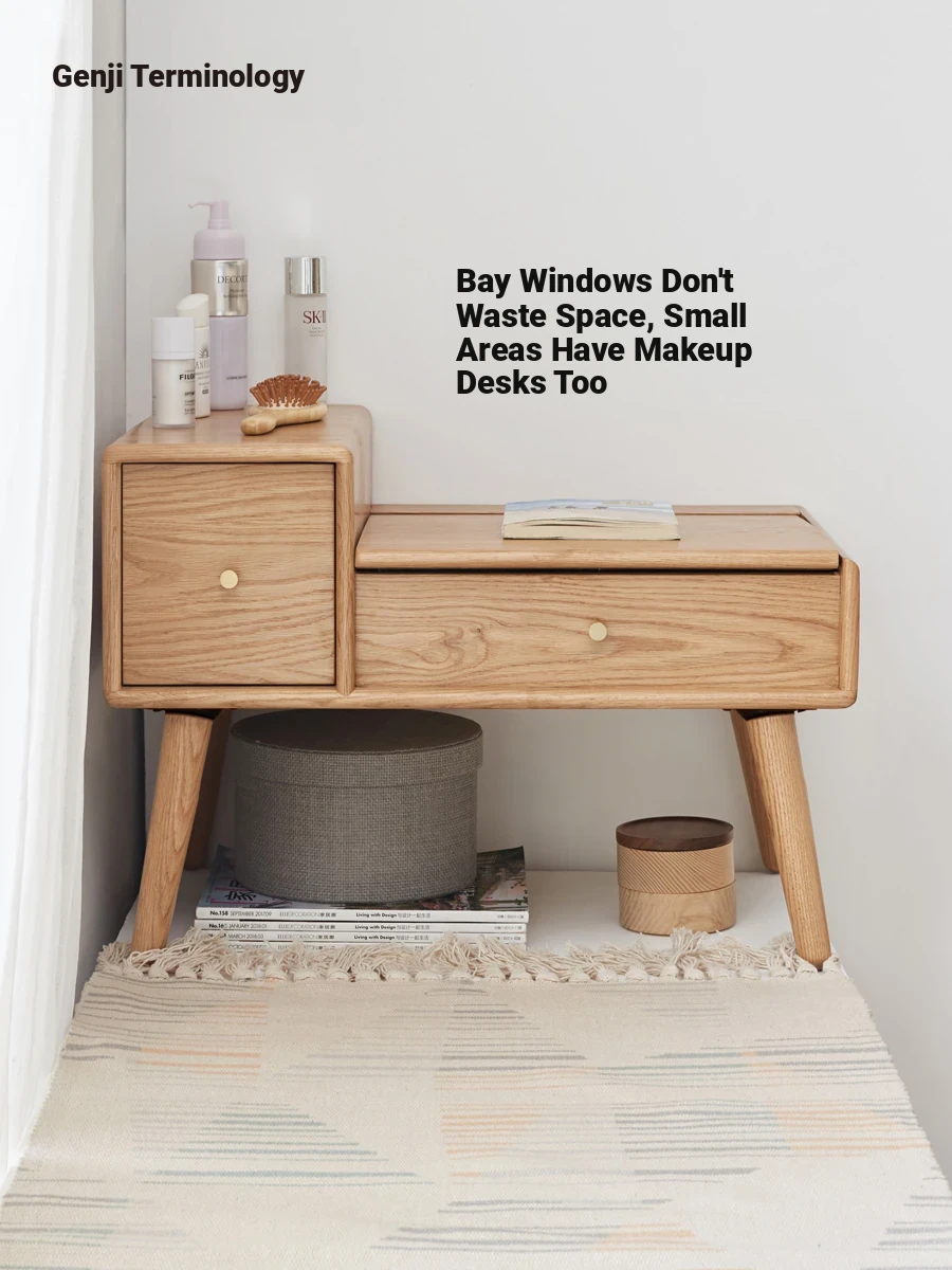 Genji Wood Solid Wood Makeup Table - Nordic Minimalist Oak Vanity for Bedroom, Multi-functional Window Sill Dressing Table, Stylish and Compact Design.