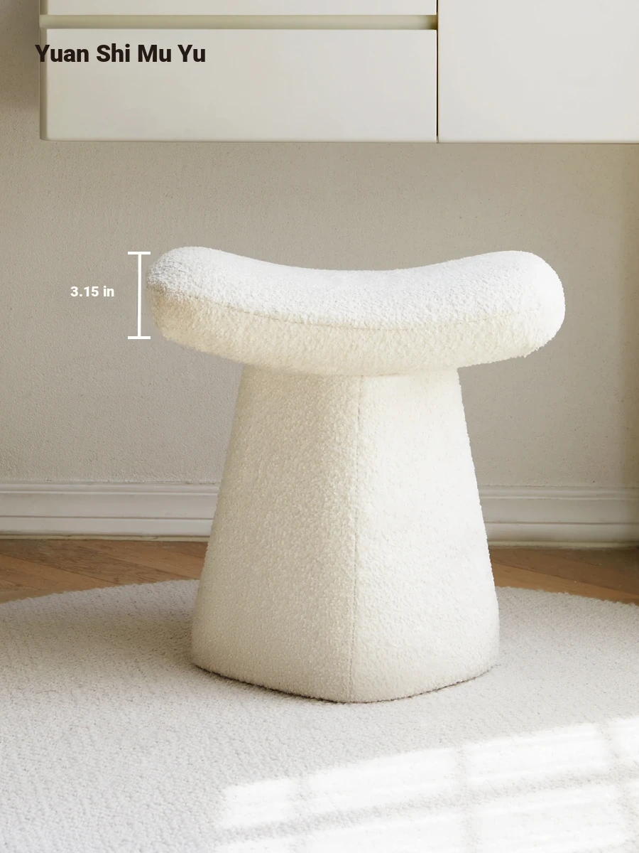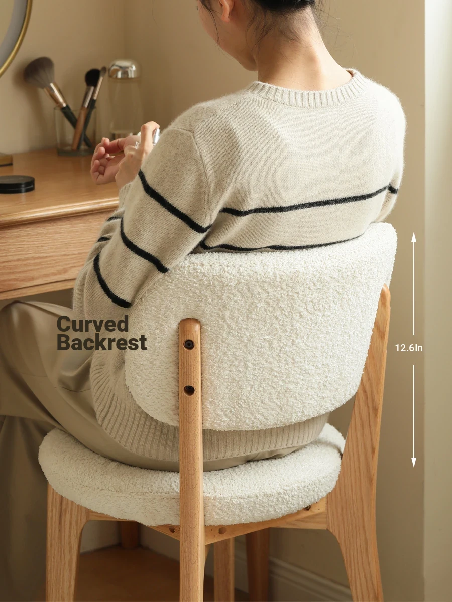 Genji Wooden Modern Vanity Stool - Minimalist White Makeup Chair with Soft Lambswool Cushion for Girls' Bedrooms - Elegant and Comfortable Design for Your Beauty Routine