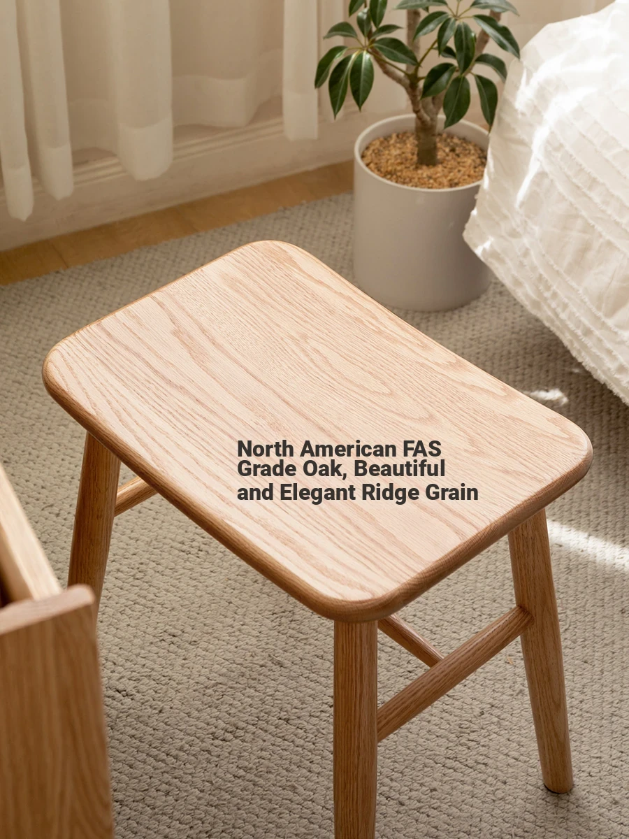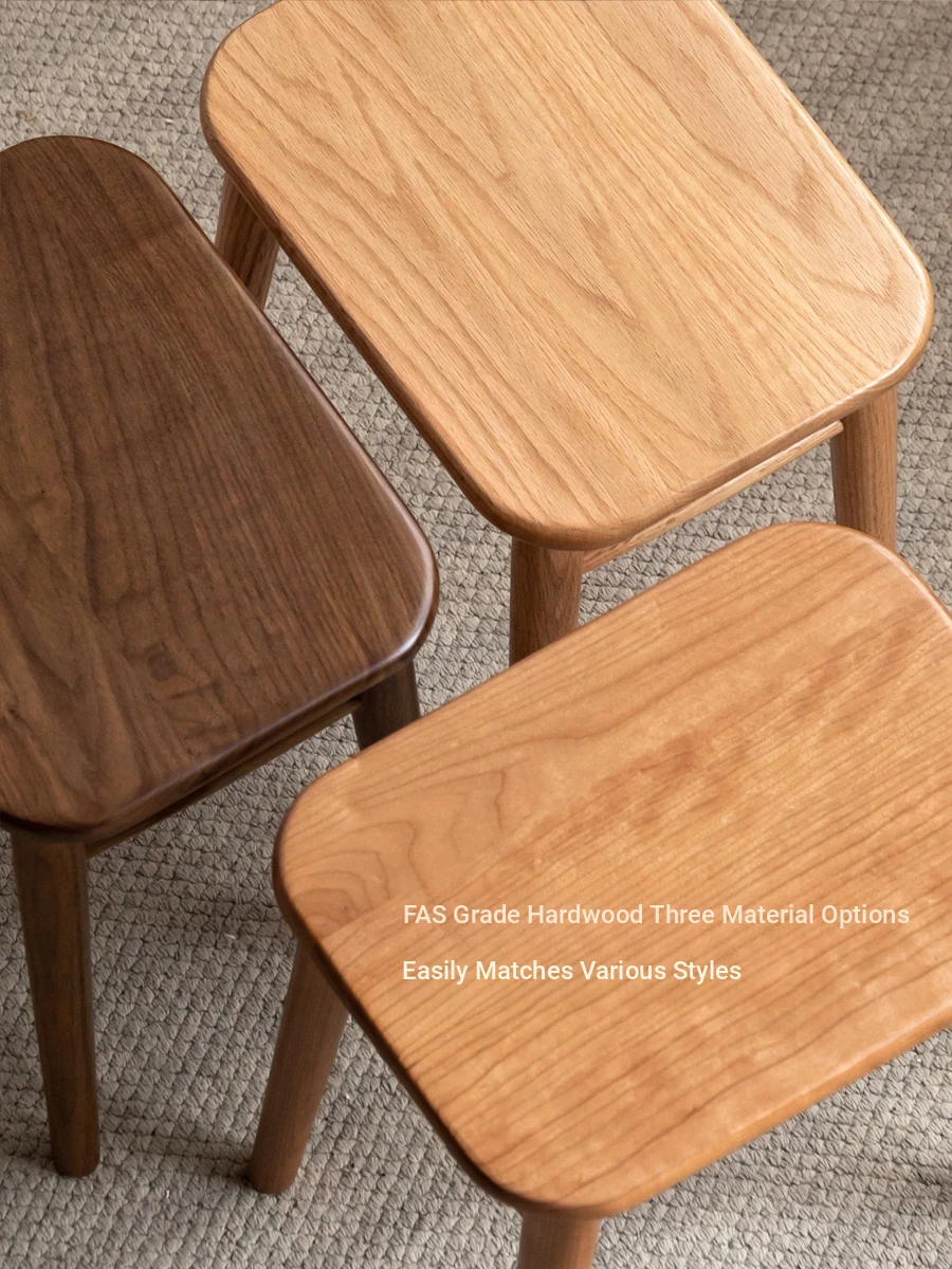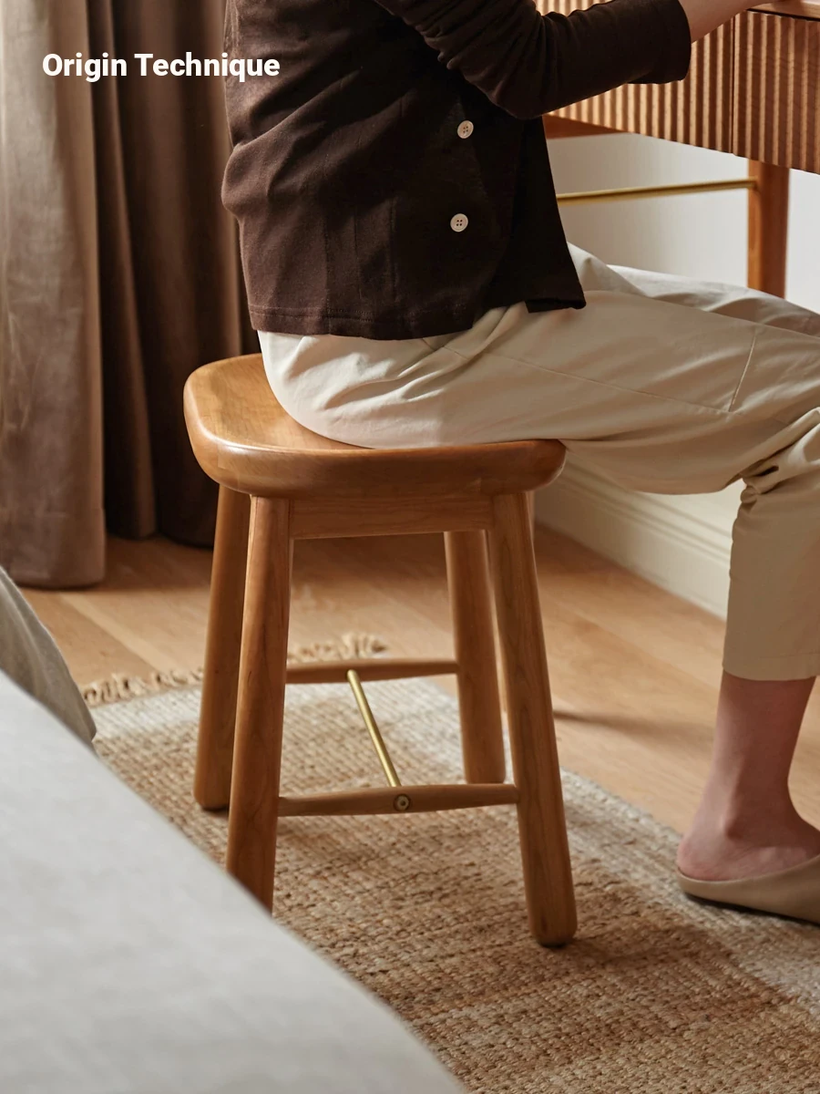 GenShi MuYu Solid Wood Makeup Stool - Modern Minimalist Bedroom Vanity Seat, Home Use, Lightweight Luxury Cherry Wood with Soft Cushion