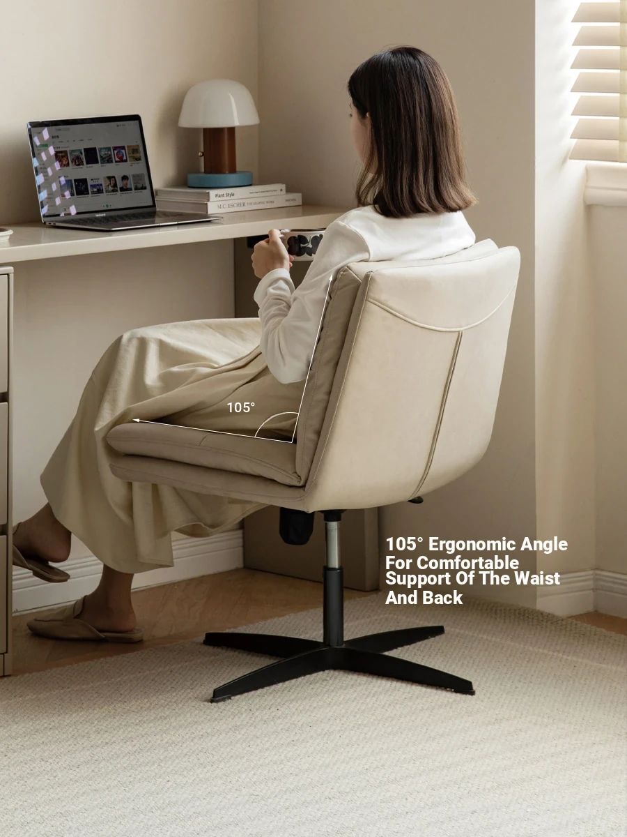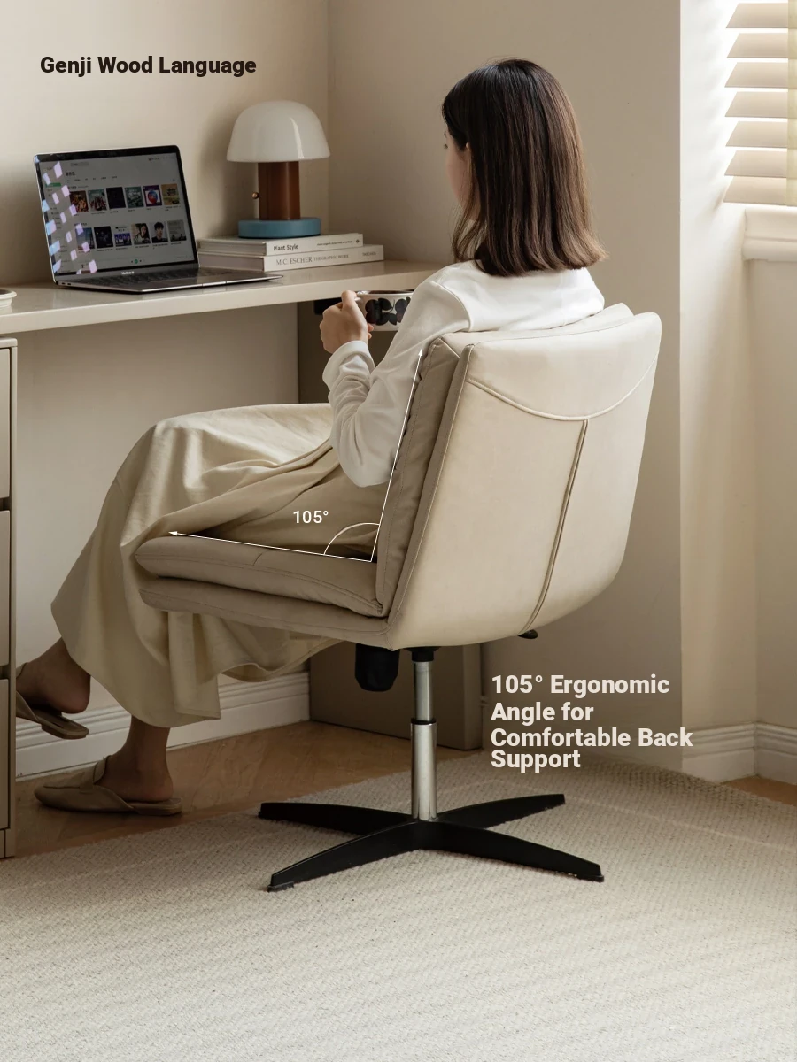Genji Wood Creations Cream-Colored Rotating Makeup Chair - Adjustable Modern Office Chair with Soft Cushion and Tech Fabric for Vanity Use. Perfect Blend of Style and Comfort!