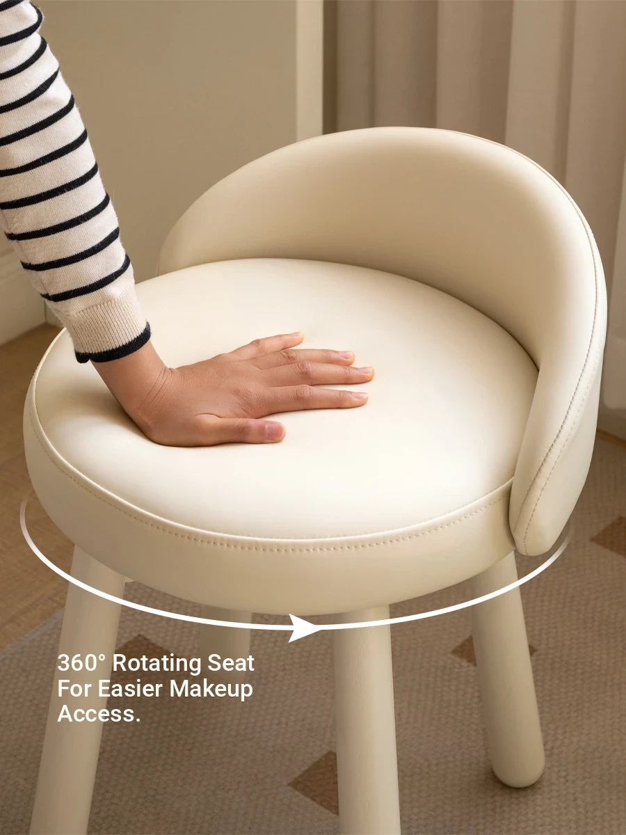 Genji Mu Yu Modern White Makeup Stool - Creamy Aesthetic Leather Upholstered Vanity Bench for Bedroom, Soft Cushioned Design, Minimalist Style