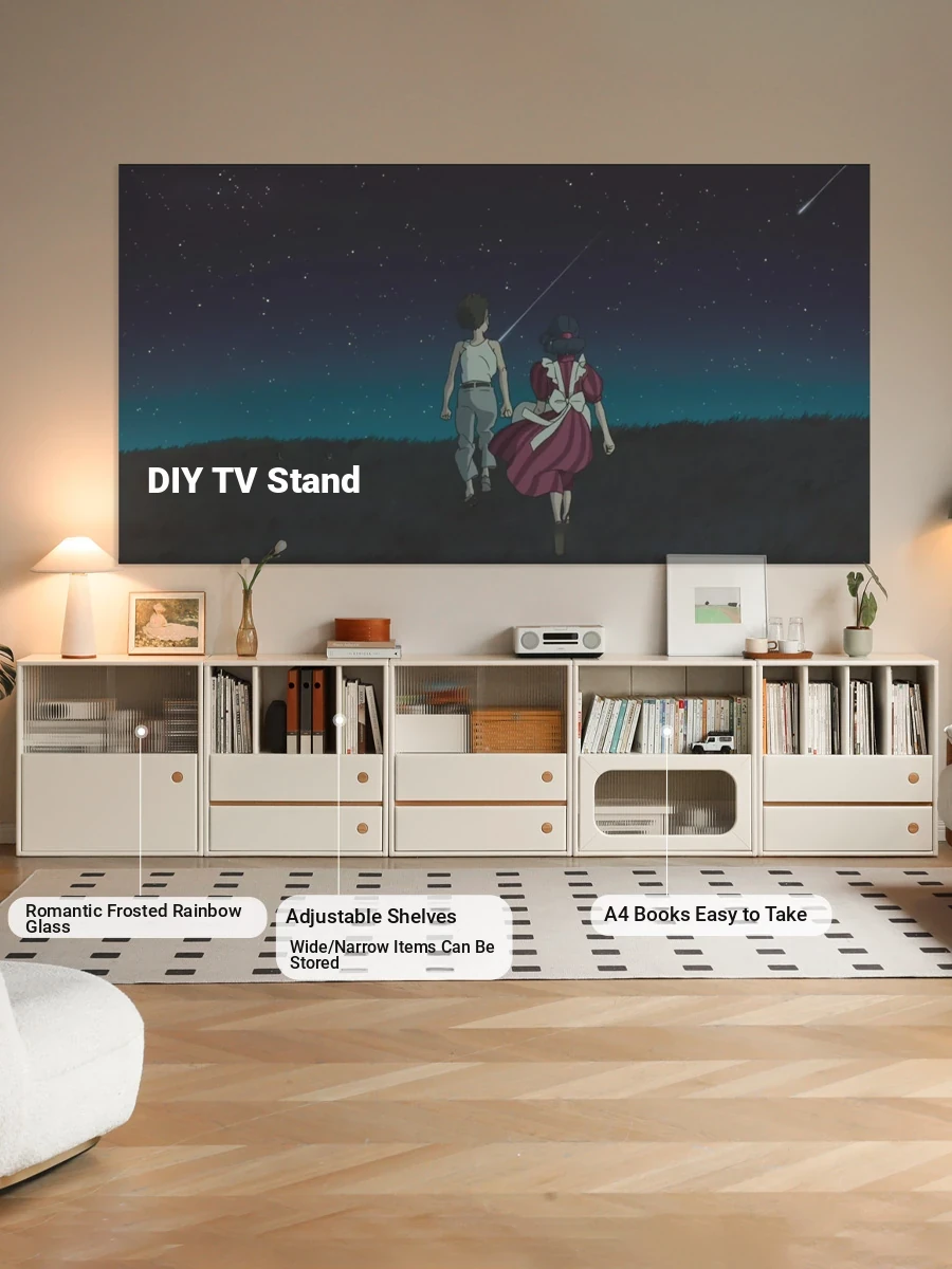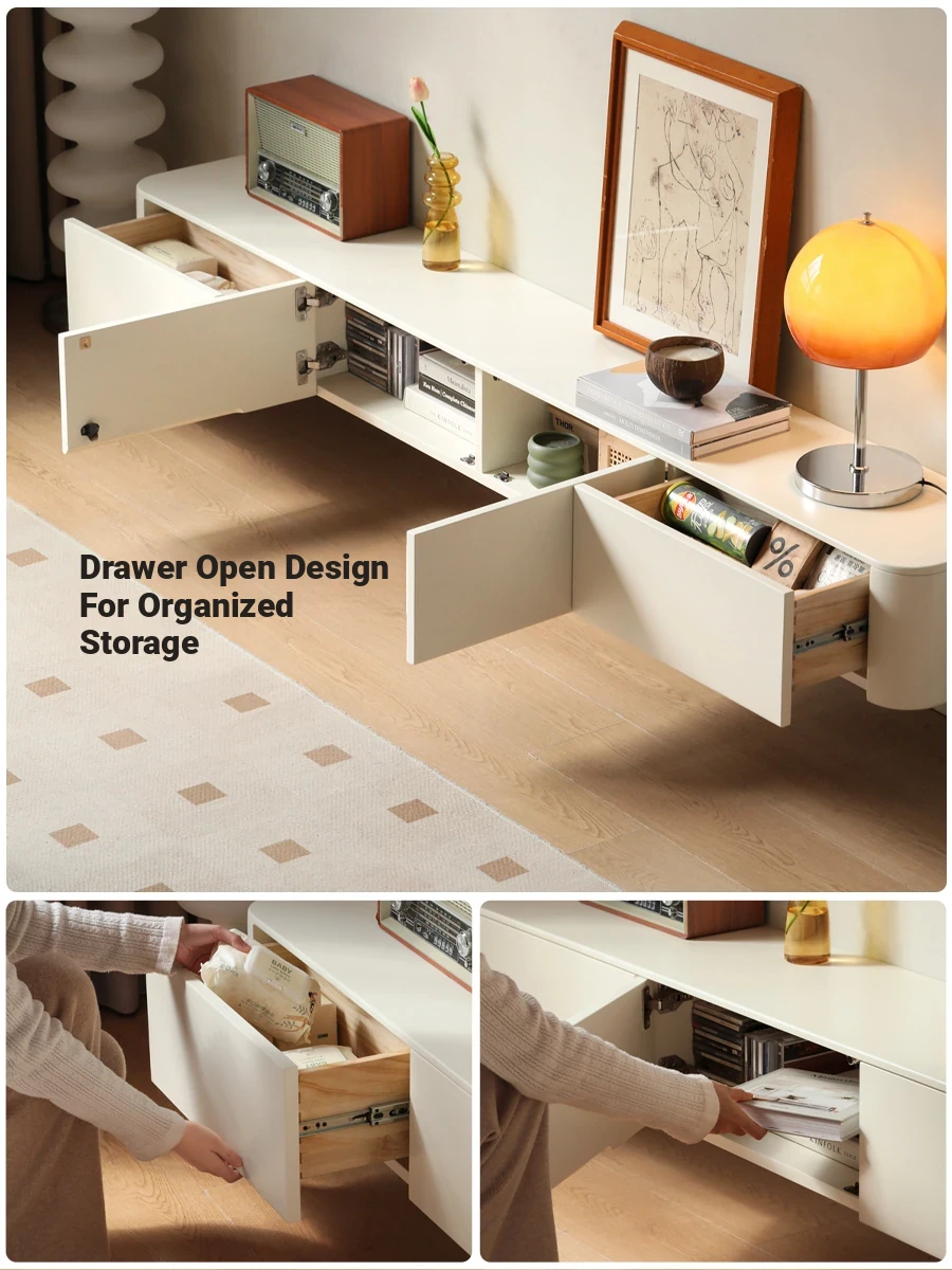 Genji Mu Yu Solid Wood Floating TV Cabinet - Creamy Style Storage Unit for Living Room, Elegant and Space-Saving Design, Perfect for Modern Interiors