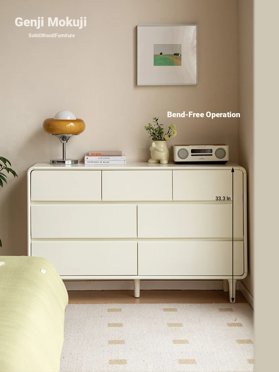 "Genji Mu Yu Solid Wood Nine-Drawer Chest - Creamy Bed End Cabinet, Modern Minimalist White Storage Organizer for Bedroom"