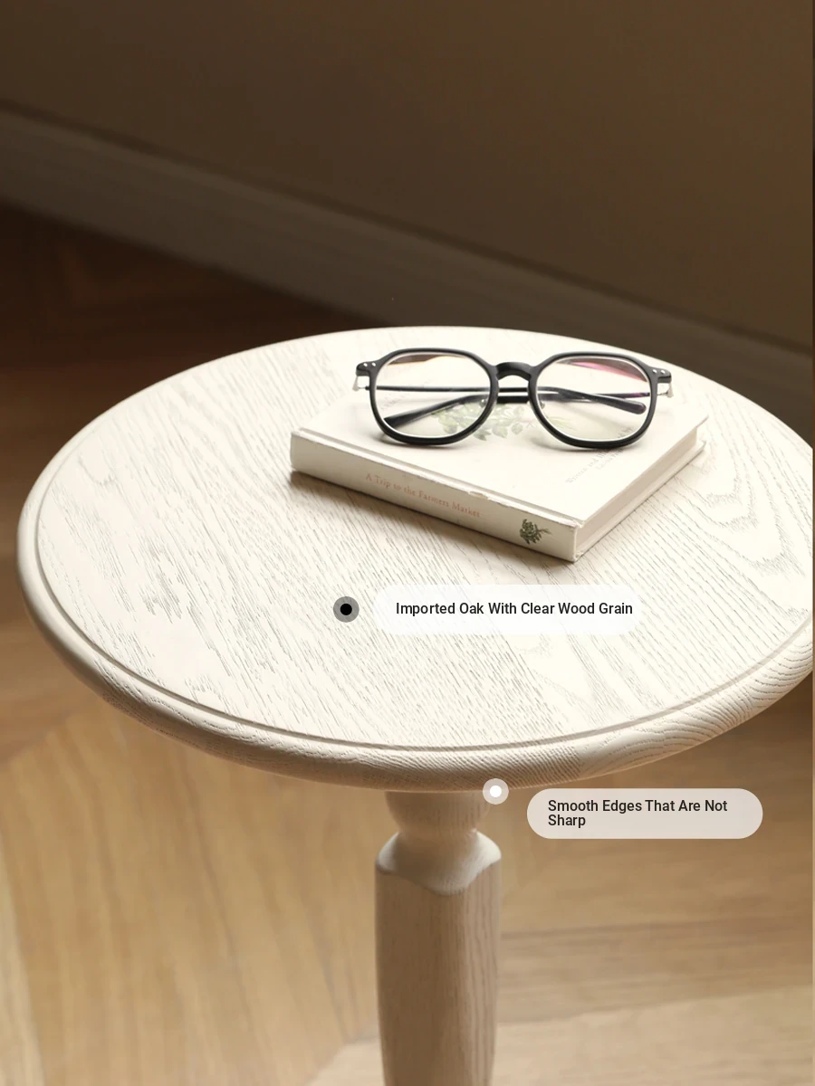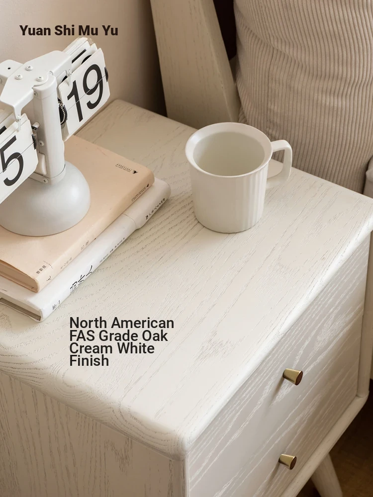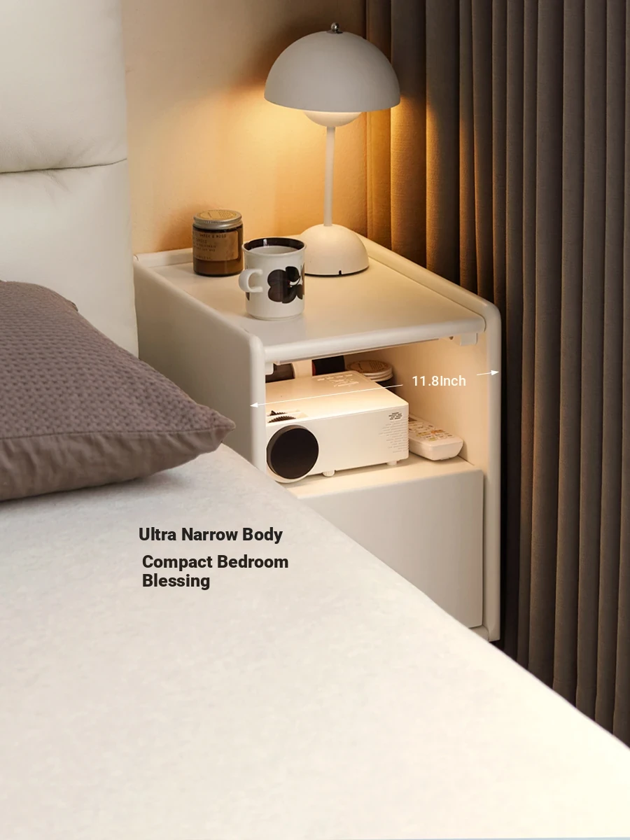 Genji Muji Solid Wood Nightstand – Cream-Colored Ultra-Narrow Bedside Cabinet for Small Spaces, Minimalist White Design with Built-In Light