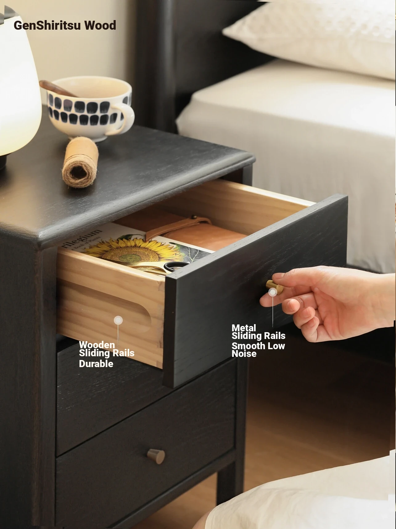 Genji Wood Art Solid Wood Nightstand – Modern Minimalist Bedside Storage Cabinet for a Luxurious Bedroom Experience, Perfect for Organizing Your Space
