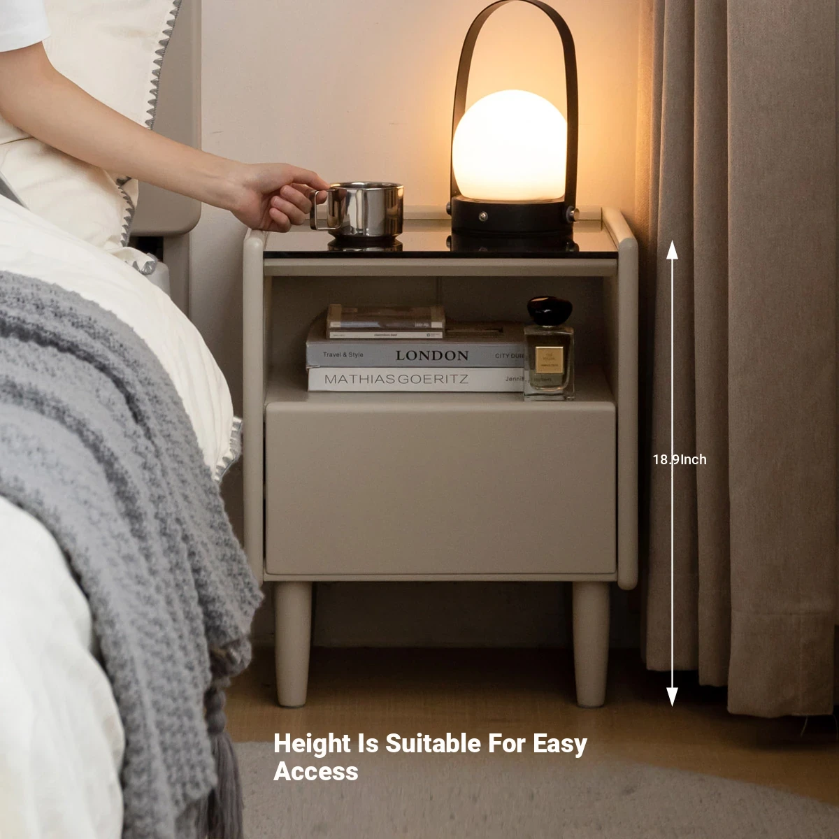 Genji MuYu Solid Wood Nightstand - Stylish Glass Bedside Table for Small Spaces, Home Luxury Accent Cabinet, Bedroom Storage Solution.