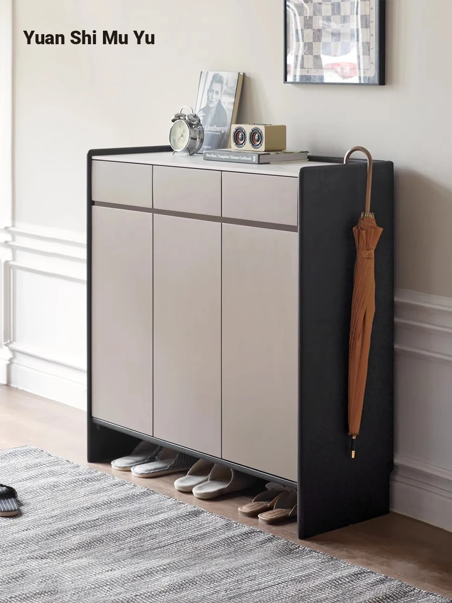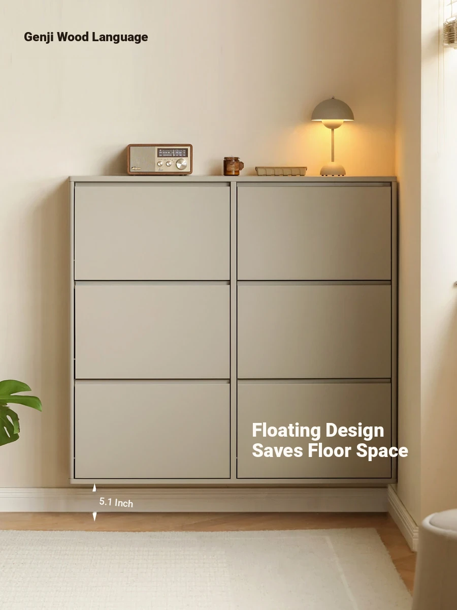 Genji Mu Yu Slim Solid Wood Flip Shoe Cabinet - Modern Luxury Entryway Furniture, Stylish Living Room Storage Organizer, Wall-Mounted Shoe Rack for Home Entrance.