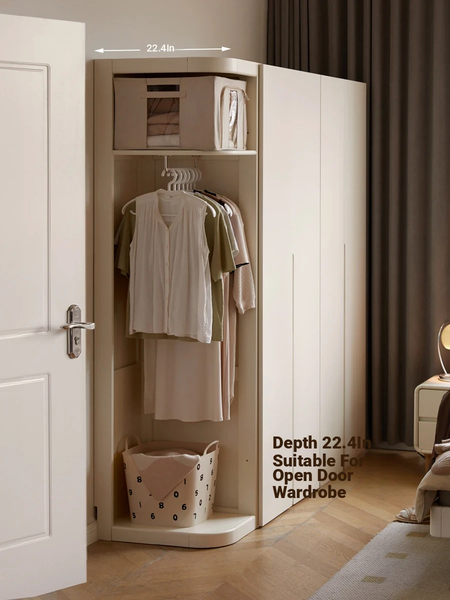 GenShi MuYu Solid Wood Corner Cabinet – Stylish White Corner Shelf for Home, Perfect for Bedroom Walls, Creamy Aesthetic Corner Clothes Rack, Maximizing Space with Charm and Functionality.