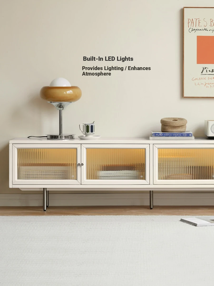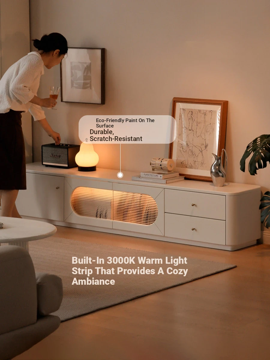 Gen's Solid Wood TV Cabinet - Modern Minimalist Large Capacity Storage Unit with Creamy Design and LED Lighting, Perfect for Your Living Room!