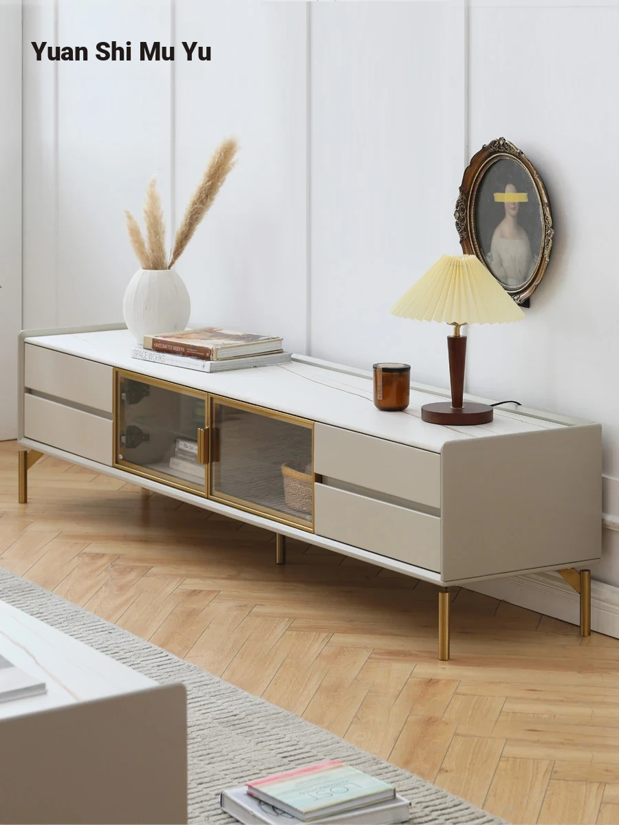 Elegant Genji Wood Light Luxury Rock Panel TV Stand - Modern Minimalist Italian Solid Wood Low Cabinet Suite for Small Spaces with Coffee Table组合