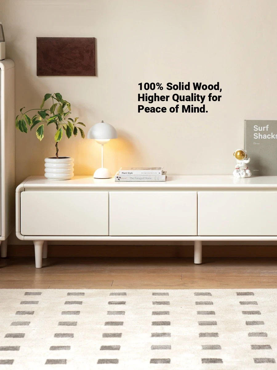 Genji Mu Yu Solid Wood TV Cabinet with Drawers – Creamy White Storage Unit for Living Room, Perfect for Small Spaces