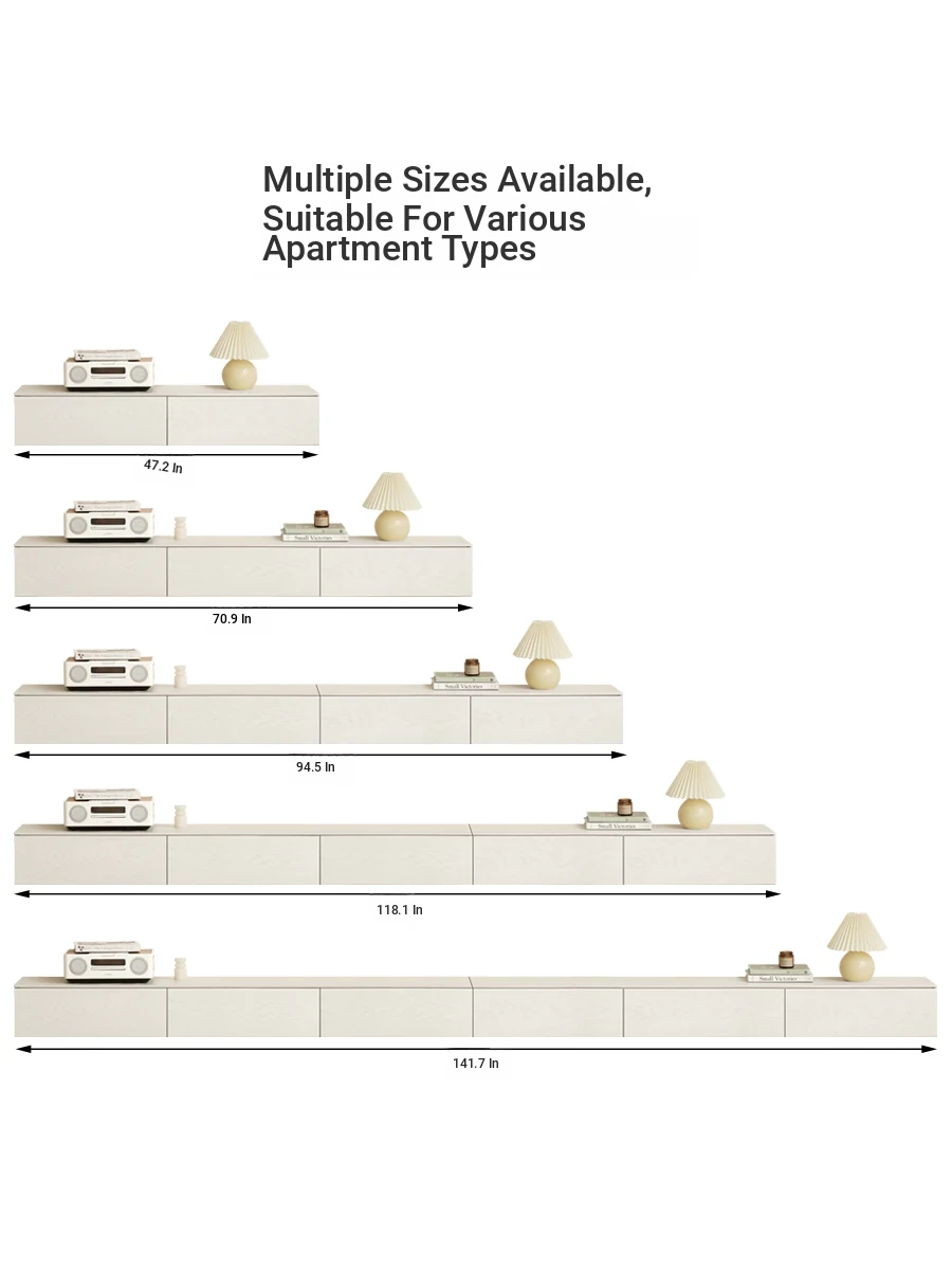 Genji Mu Yu Solid Wood TV Cabinet - Creamy Aesthetic for Small Spaces, Minimalist Wall-Mounted White TV Stand for Your Living Room.