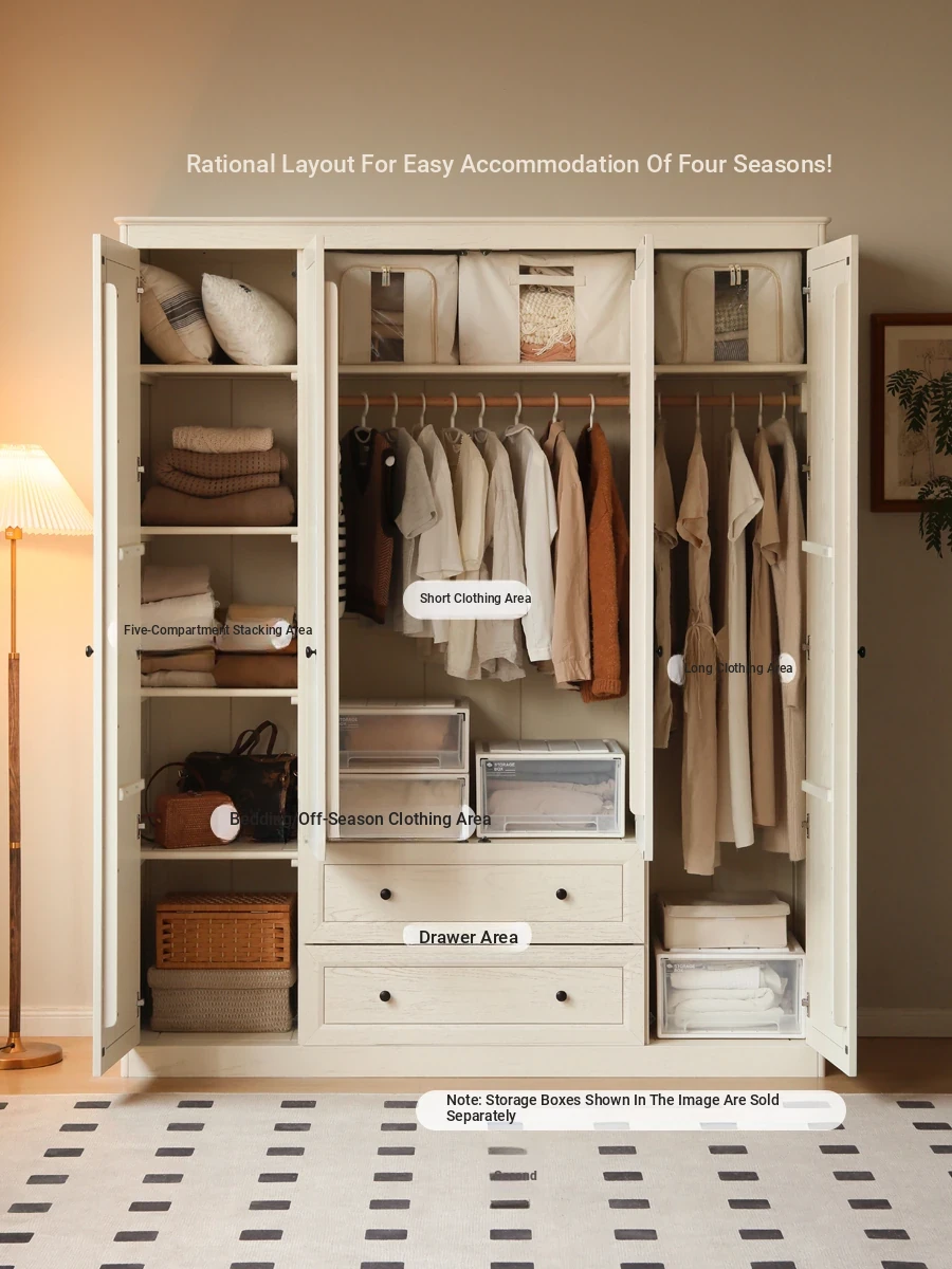 Genji Mu Yu Solid Wood Wardrobe - Cream Oak Double-Door Armoire, Elegant American-Style Storage Cabinet for Your Home