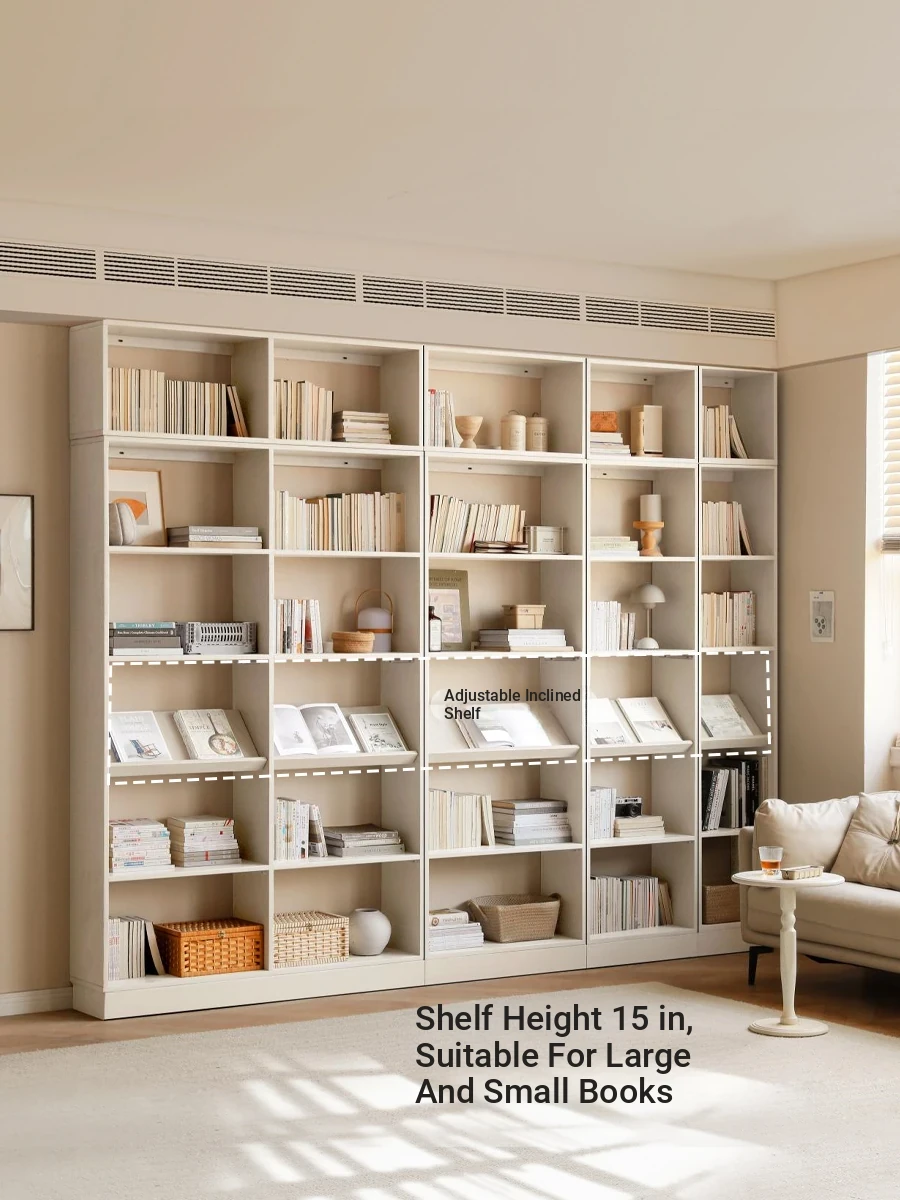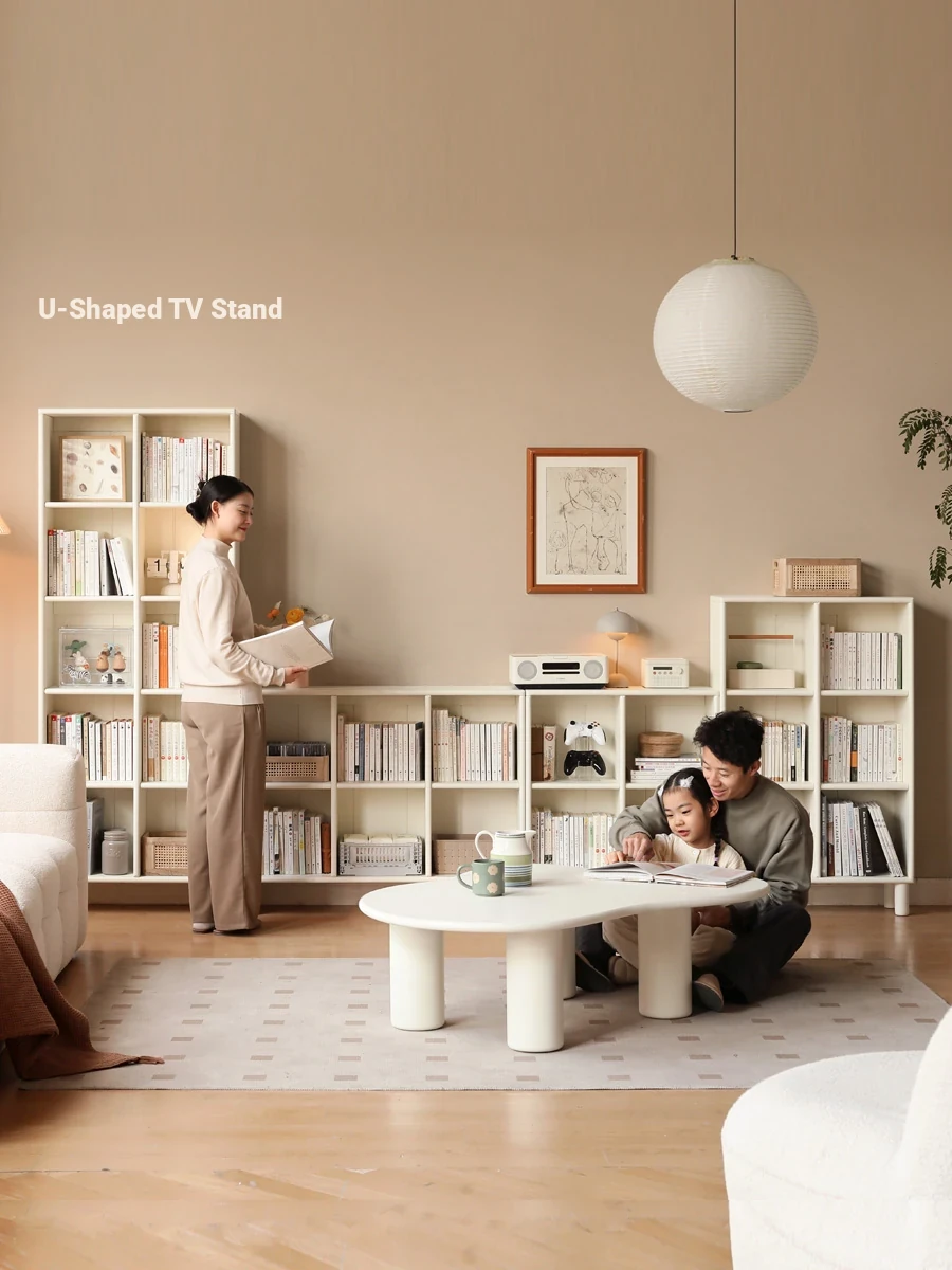 Genji Mu Language Solid Wood Bookshelf - Creamy Wall-Mounted Storage Cabinet, Elegant White Display Shelves for Your Living Room, Perfect for Showcasing Your Treasures.