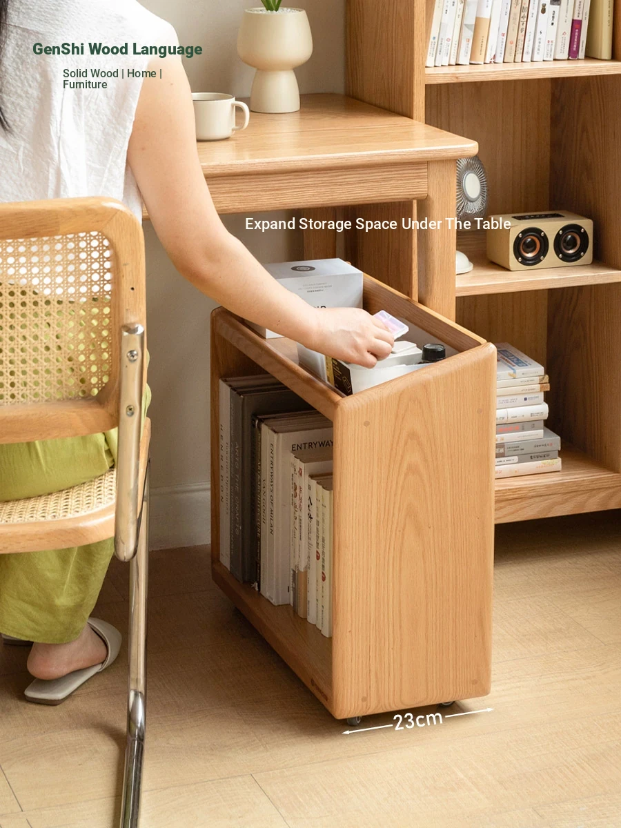 Genji Woodworks Under-Desk Rolling Bookshelf & Storage Cabinet – Solid Wood Small Mobile Cart for Files and Essentials, Perfect for Organizing Your Space.