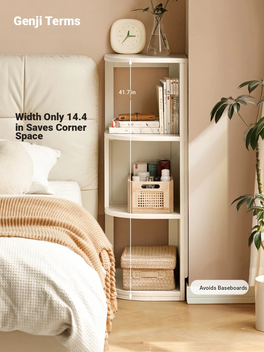 Genji Mu Yu Solid Wood Corner Bookshelf - Creamy White Multi-Layered Storage Rack for Stylish Wall Corners - Perfect for Organizing and Displaying Your Books and Decor!
