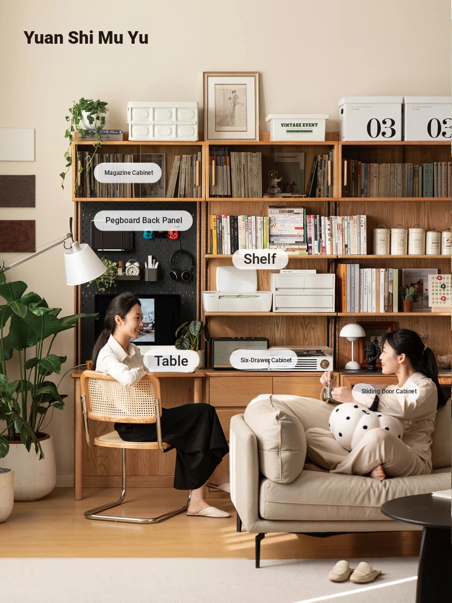 Genji Wood Solid Wood Bookshelf - Versatile Modular Bookcase for Home Study, Oak Simple Floor Storage Cabinet, Elegant and Functional Living Space Organizer
