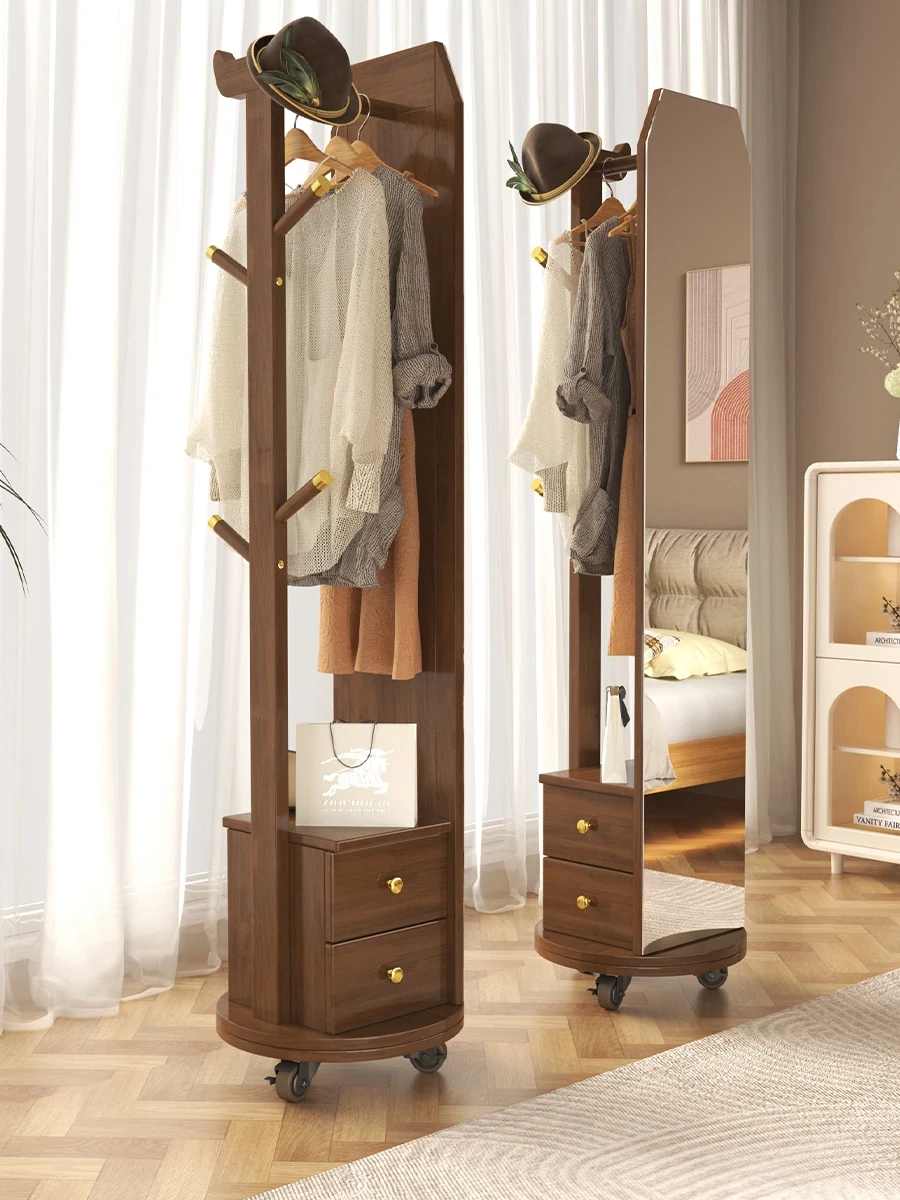 "Stylish Multi-Functional Solid Wood Dressing Mirror with Clothes Rack – Perfect for Small Spaces, Rotatable Full-Length Floor Mirror for Bedroom Use"