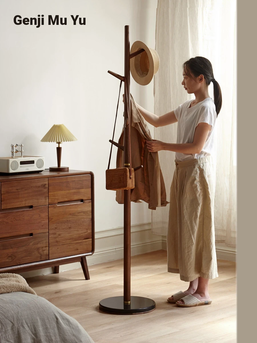 Genji Mu Yu Solid Wood Coat Rack - Stylish Freestanding Hanger for Home Use, Black Walnut Finish, Perfect for Bedroom and Living Room - Ideal for Coats and Bags