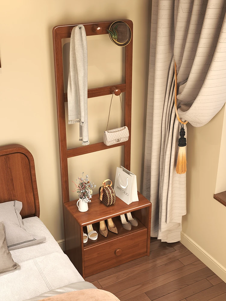 "Stylish Solid Wood Coat Rack & Bedside Storage Cabinet – Space-Saving Multifunctional Organizer for Bedroom, Ideal for Clothes Hanging & Small Spaces"
