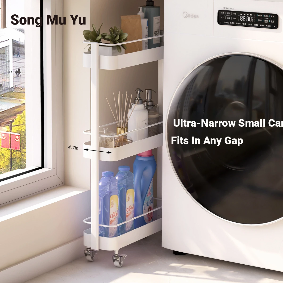 Genji Wood Small Cart - Modern Minimalist Kitchen Gap Storage Rack, Mobile Side Table for Living Room and Balcony, Perfect for Small Spaces