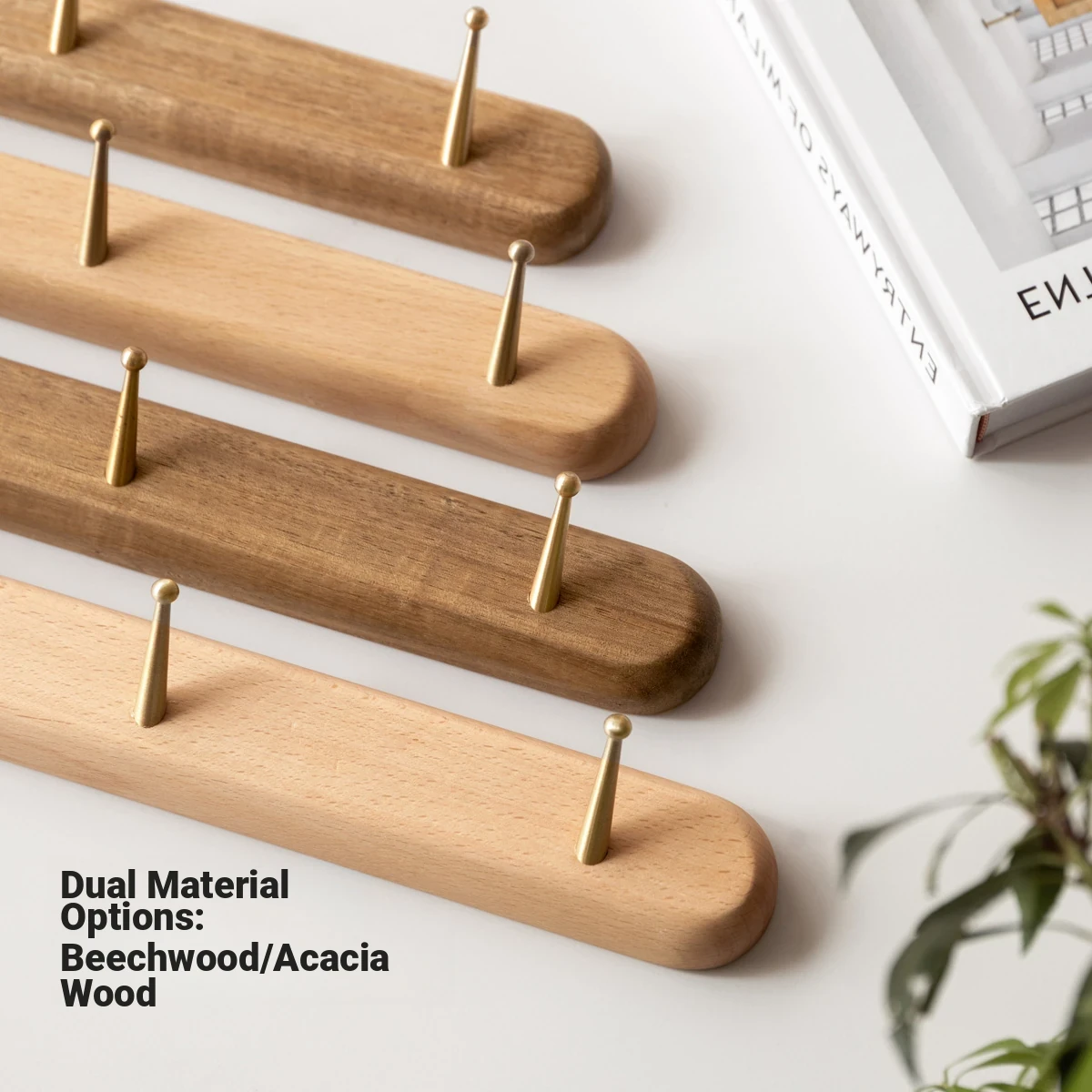 Genji Mu Yu Solid Wood Wall-Mounted Hooks – No Drilling Required, Perfect for Entryways and Bedrooms, Hassle-Free Coat and Hat Rack for a Stylish and Organized Space
