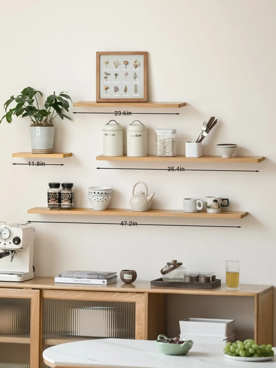 Genji Natural Solid Wood Wall-Mounted Storage Shelf – Versatile Headboard Shelf for Organizing Your Space – Stylish One-Board Bookshelf for Any Room