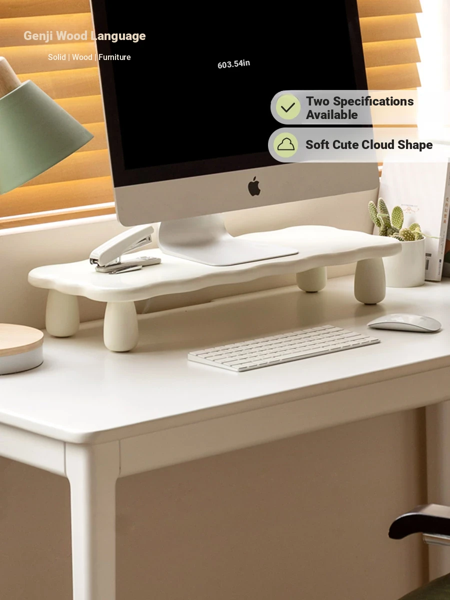Genji Wood Solid Wood Computer Monitor Stand - Height Adjustable Desktop Storage Rack for Organizing Your Workspace and Enhancing Ergonomics. Ideal for Home Office!