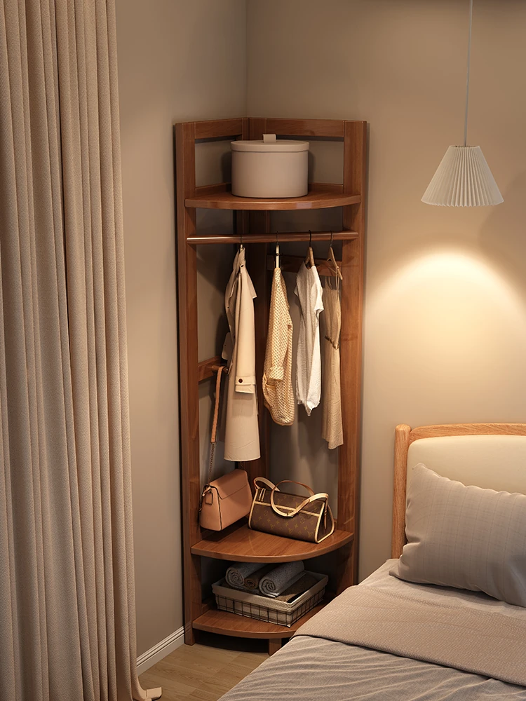Solid Wood Corner Coat Rack - Multi-Functional Triangular Clothing Organizer for Bedroom and Home Use - Stylish Floor-standing Storage Solution