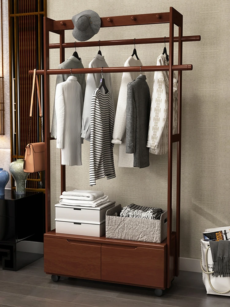 Multi-Functional Solid Wood Free-Standing Coat Rack with Drawer - Stylish & Practical Wardrobe Organizer for Home Use, Perfect for Bedrooms and Entryways