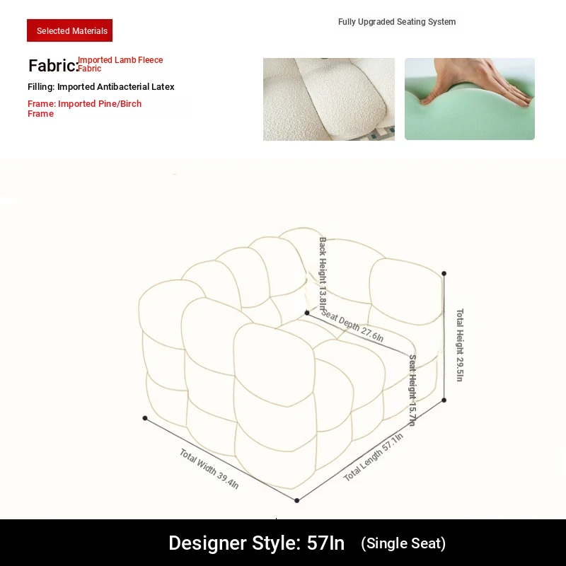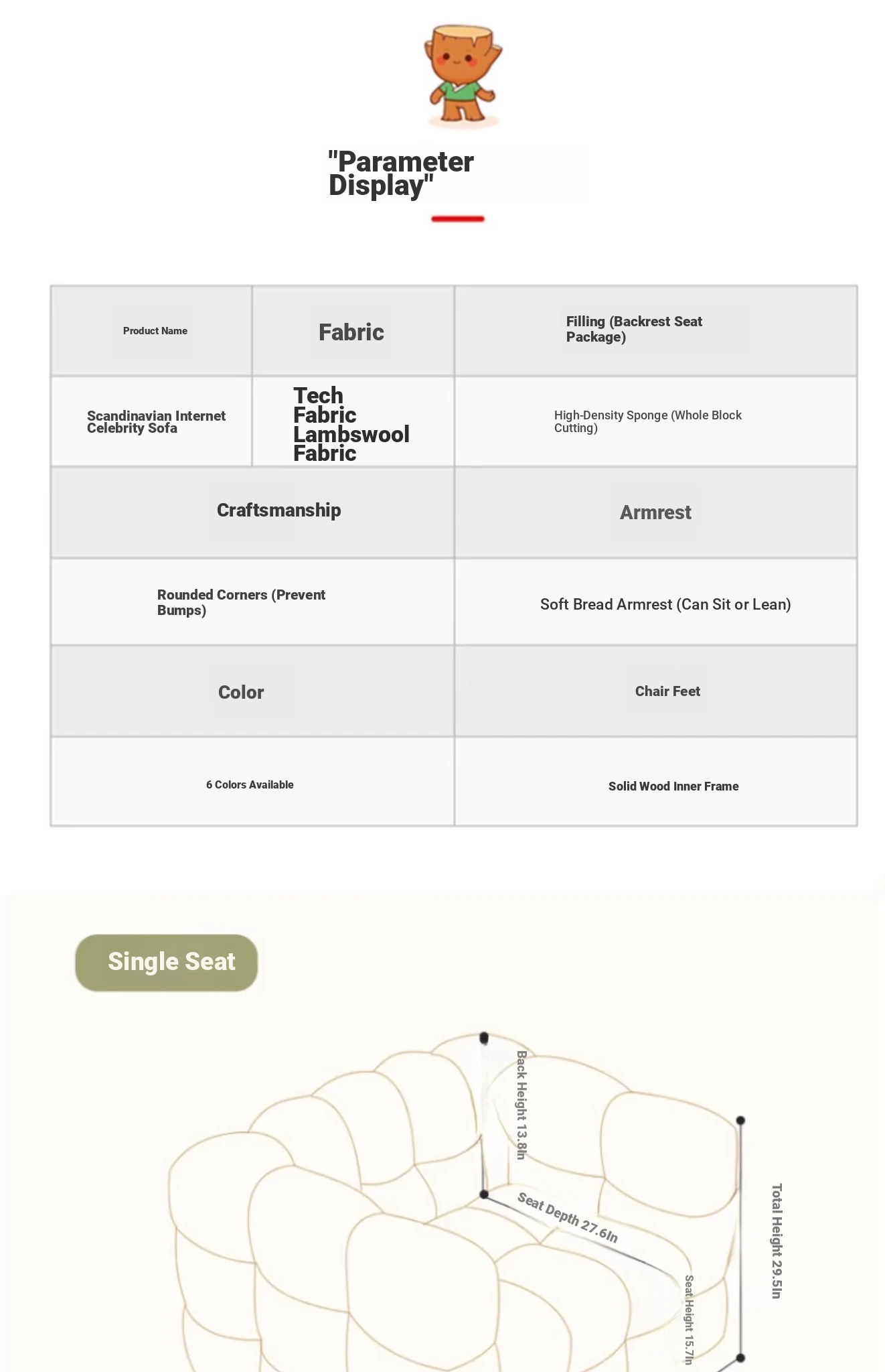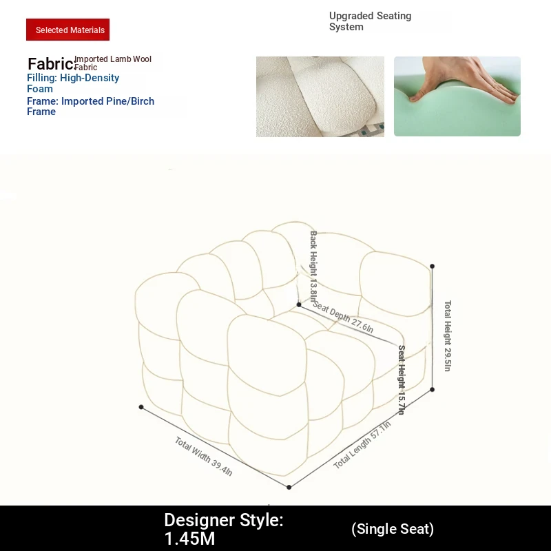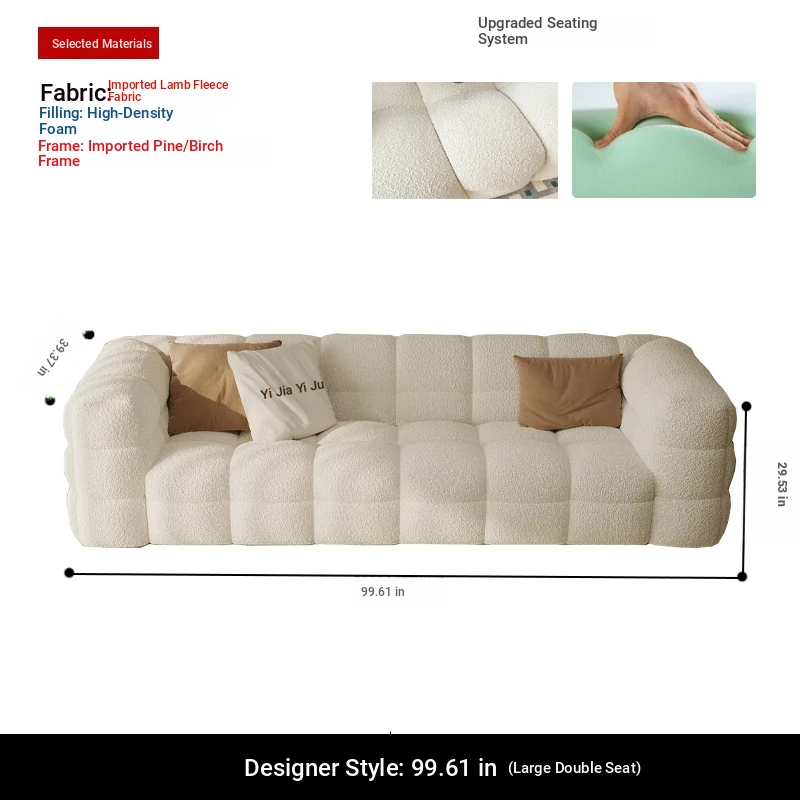 [Classy cotton candy sofa_Comfortable Cashmere fabric + high density sponge] 125.98 ins single seat