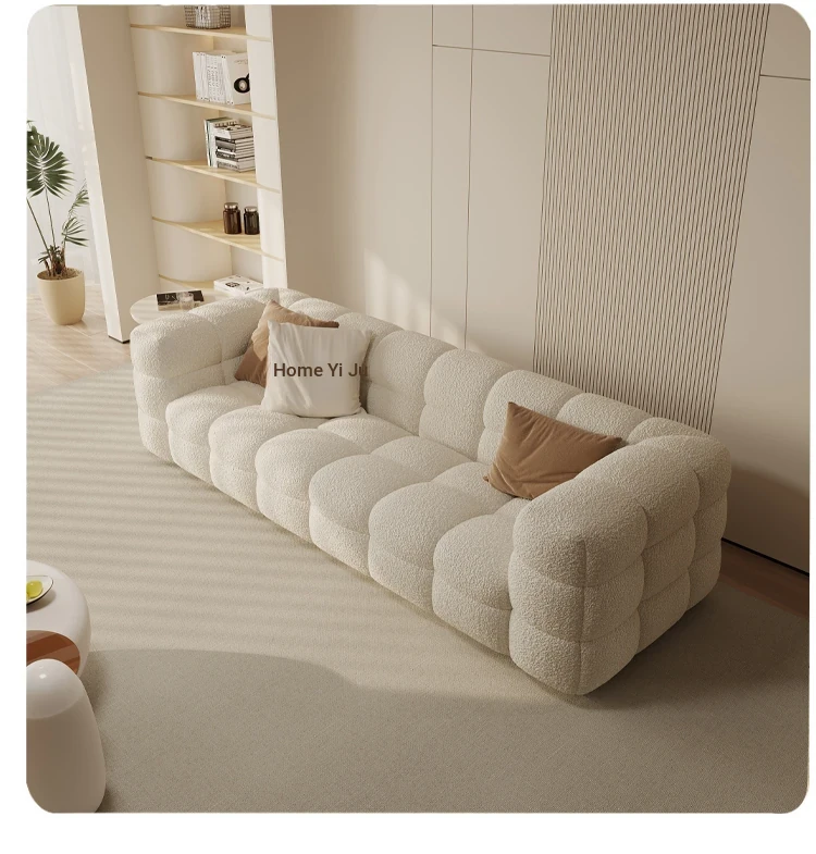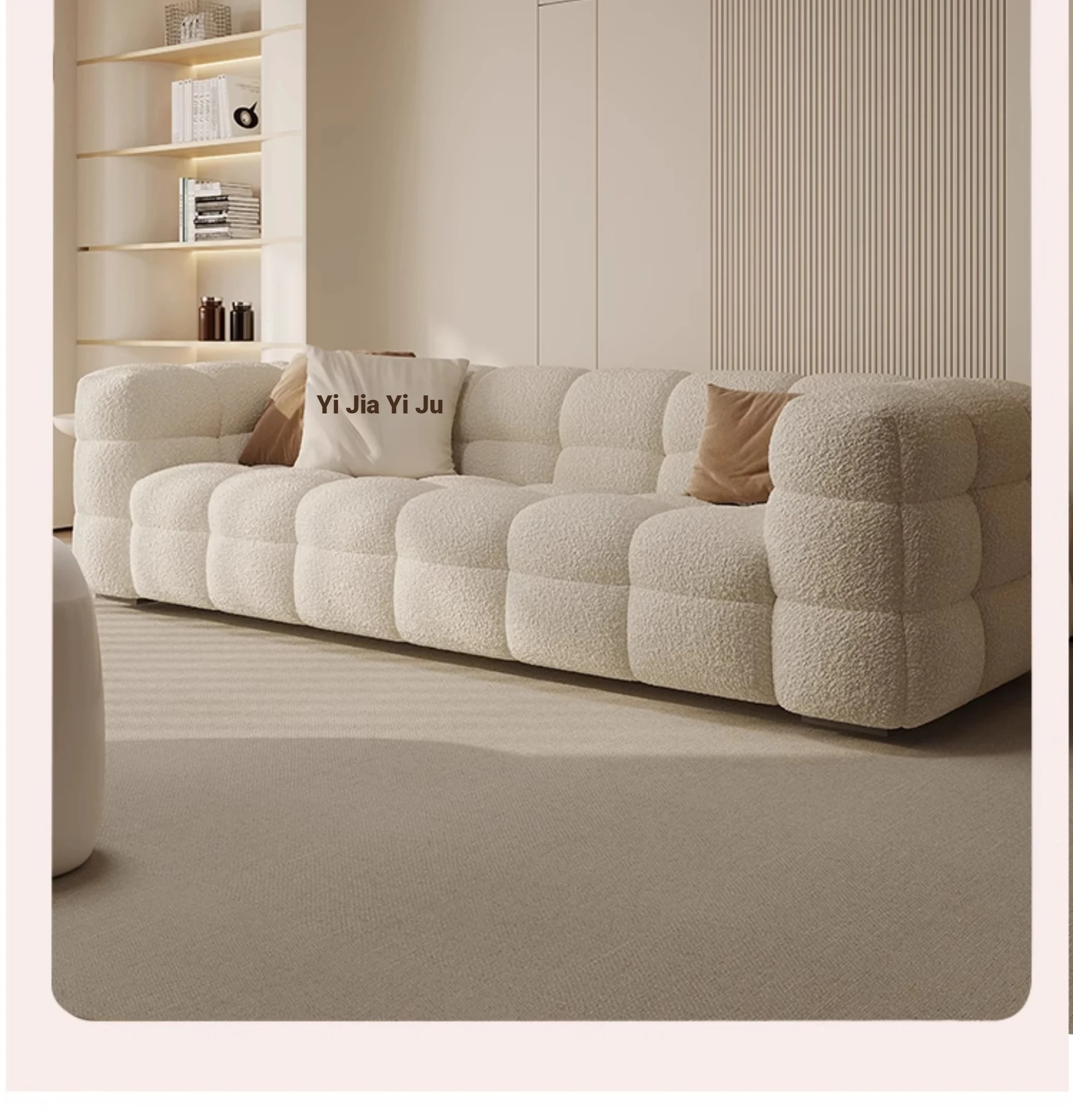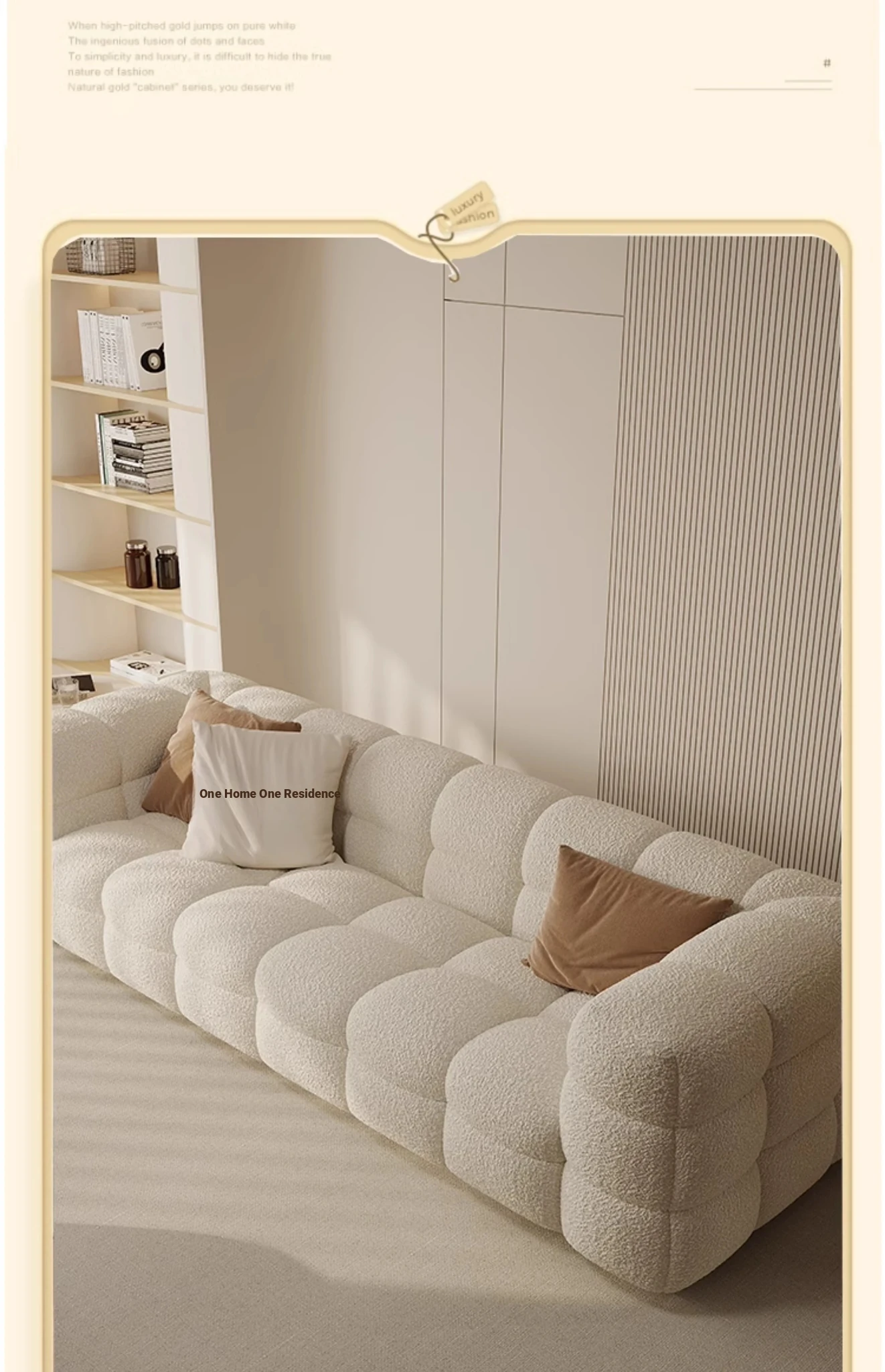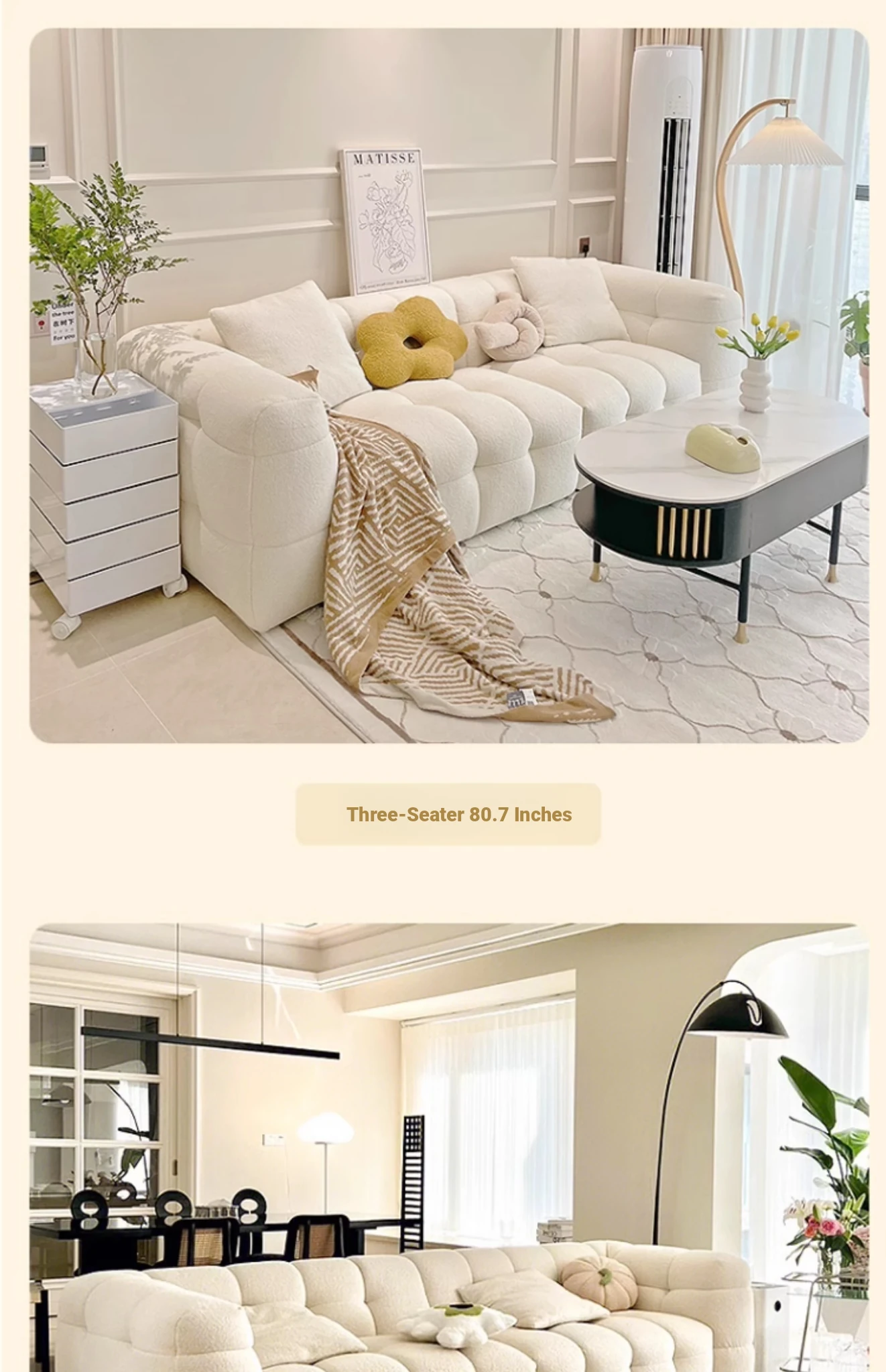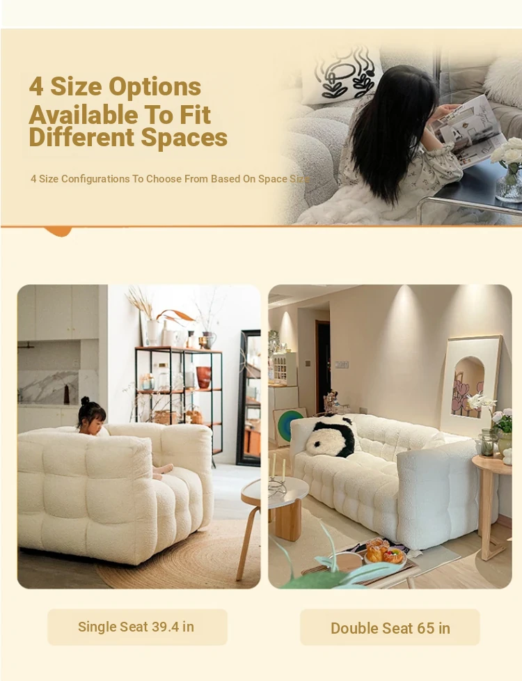 BOBA Cotton Candy Sofa - Wabi-Sabi Cream Style, Cozy 3-Seater for Small Living Rooms, Soft Wool Fleece Upholstery - Perfect for Home Décor