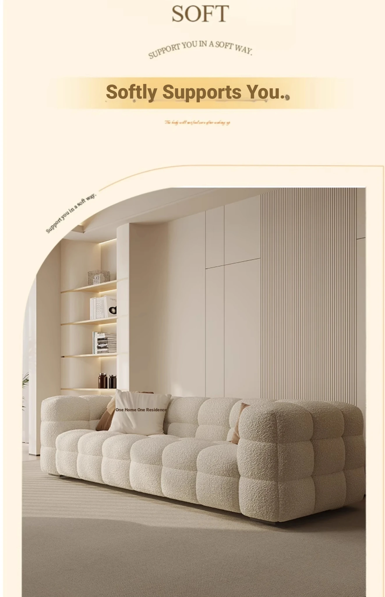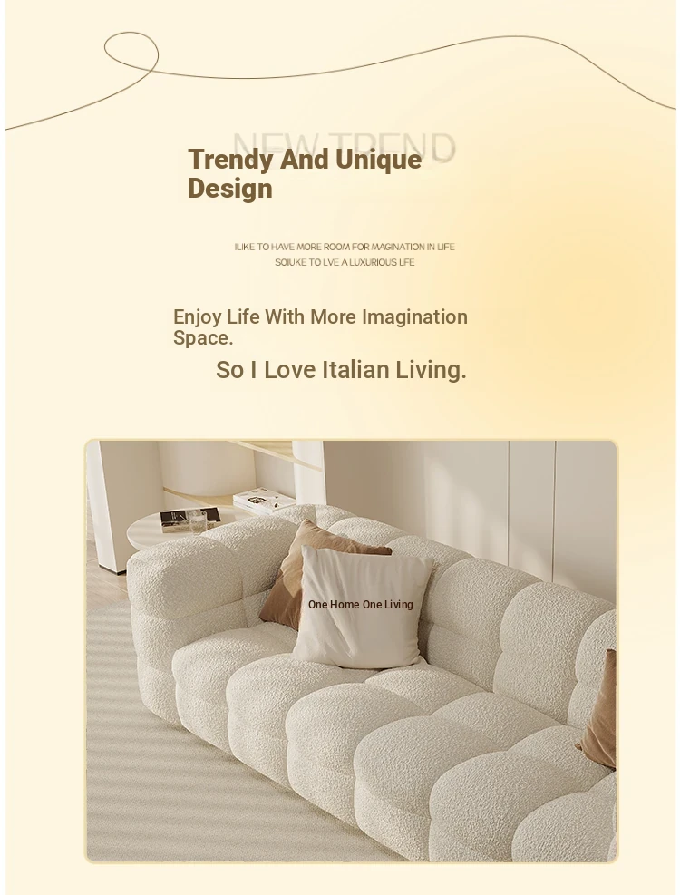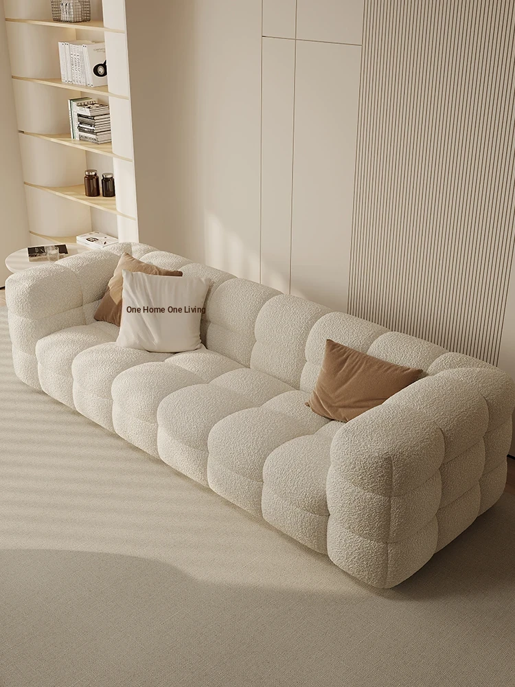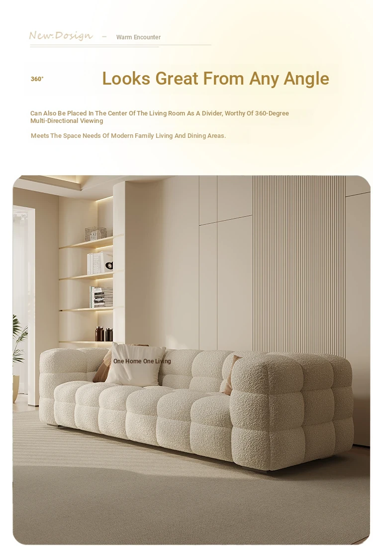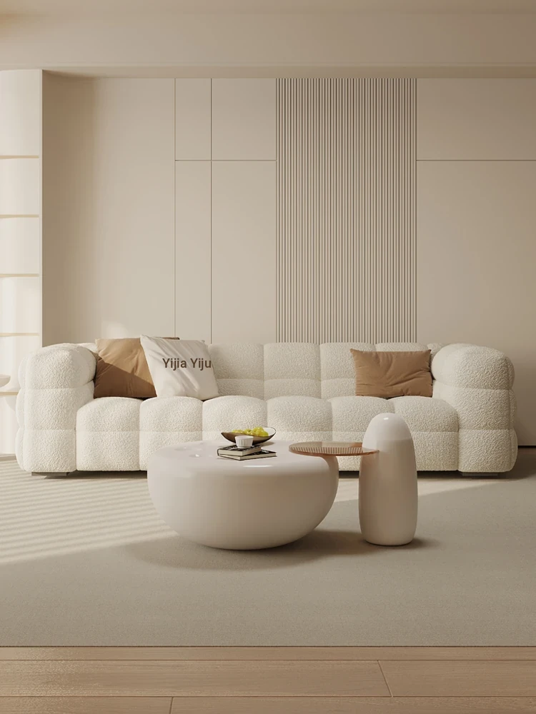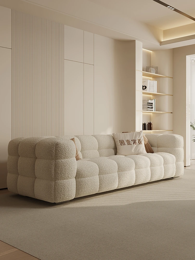 BOBA Cotton Candy Sofa - Wabi-Sabi Cream Style, Cozy 3-Seater for Small Living Rooms, Soft Wool Fleece Upholstery - Perfect for Home Décor