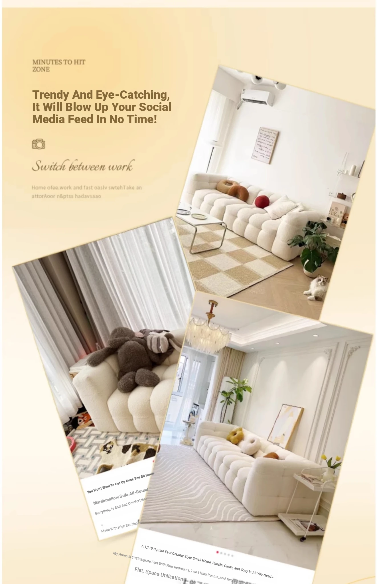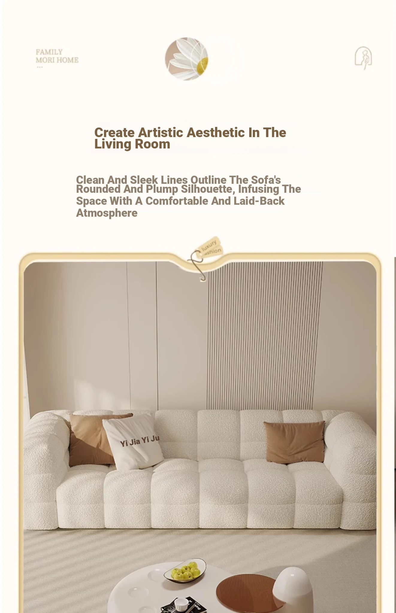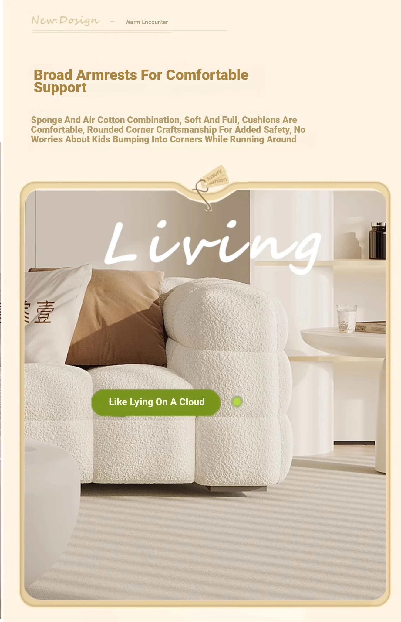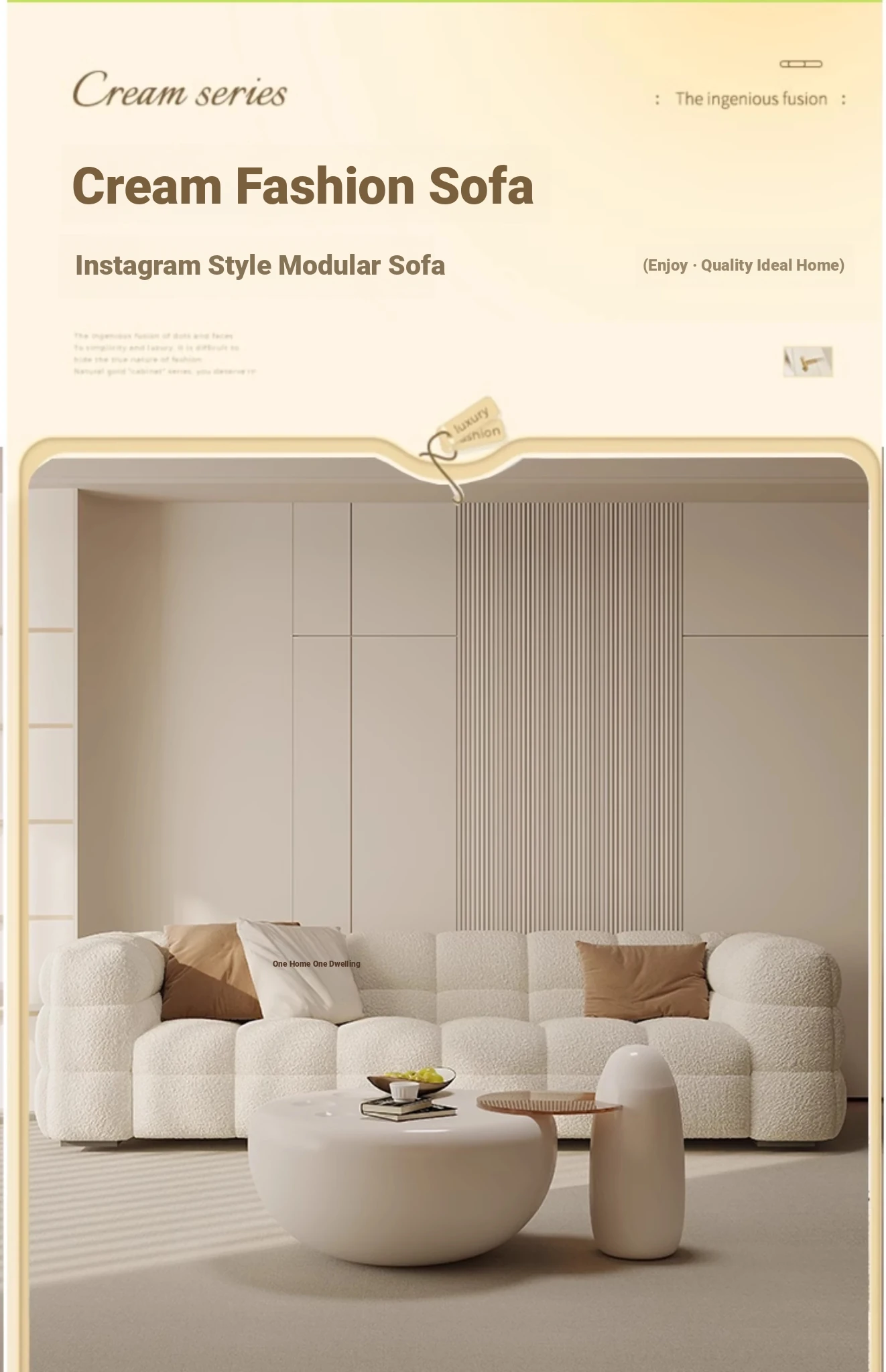 BOBA Cotton Candy Sofa - Wabi-Sabi Cream Style, Cozy 3-Seater for Small Living Rooms, Soft Wool Fleece Upholstery - Perfect for Home Décor