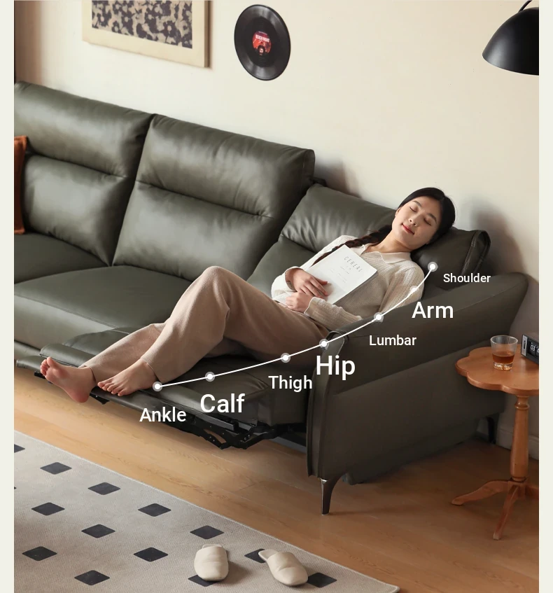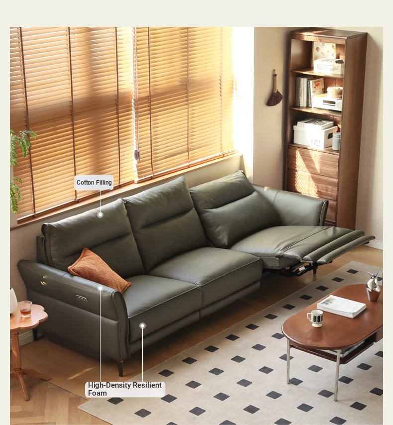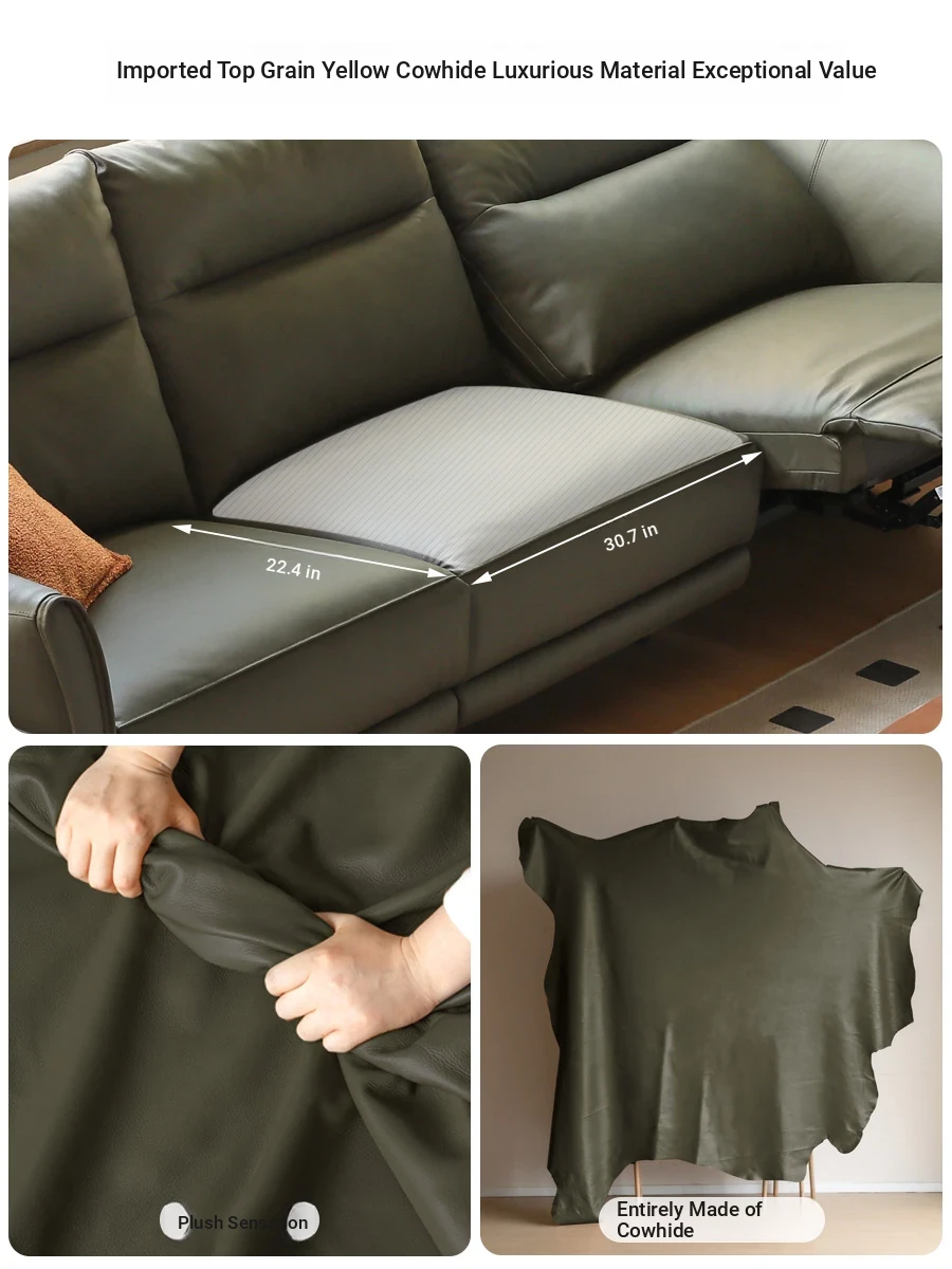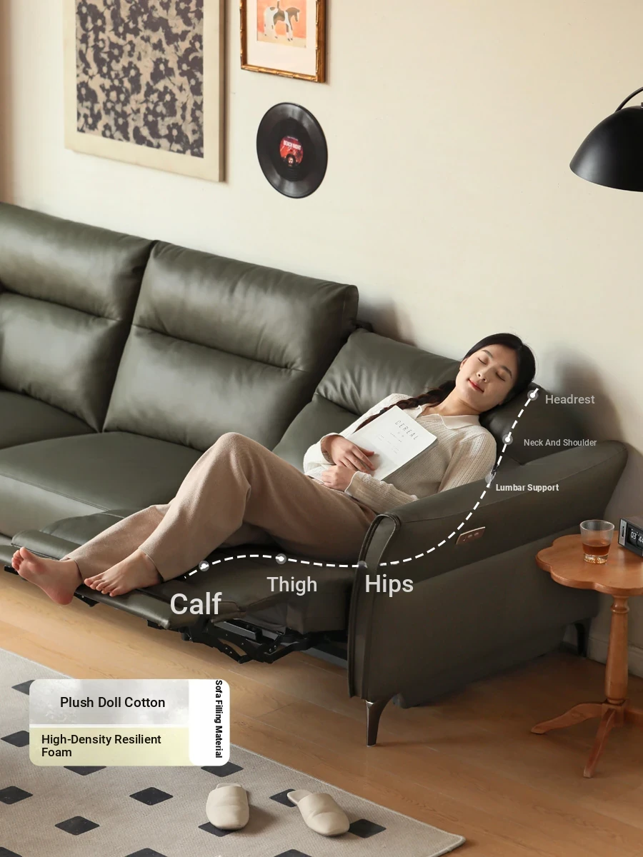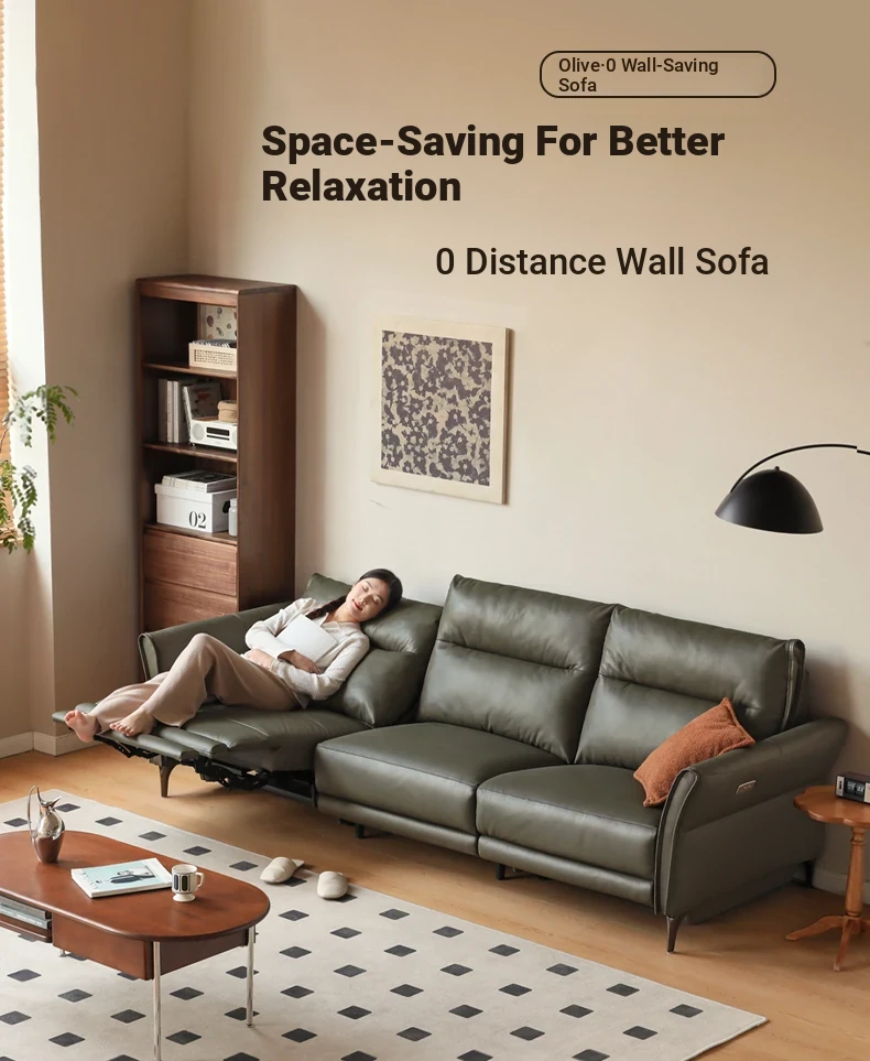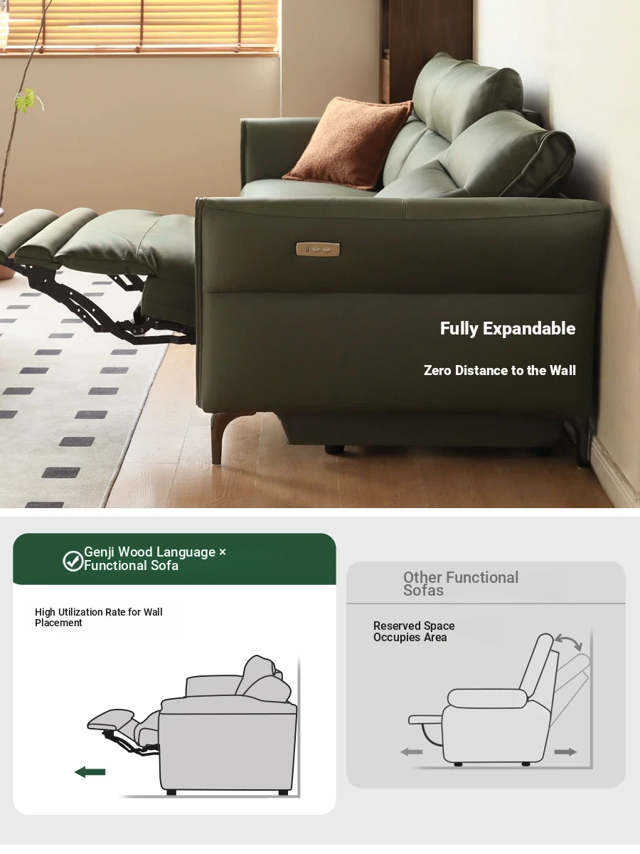 Genji Mu Yu Electric Sofa - Premium Leather 3-Seat Sofa for Small Spaces, Wall-Hugging Design with Multifunctional Features. Perfect Blend of Style and Comfort for Your Living Room!