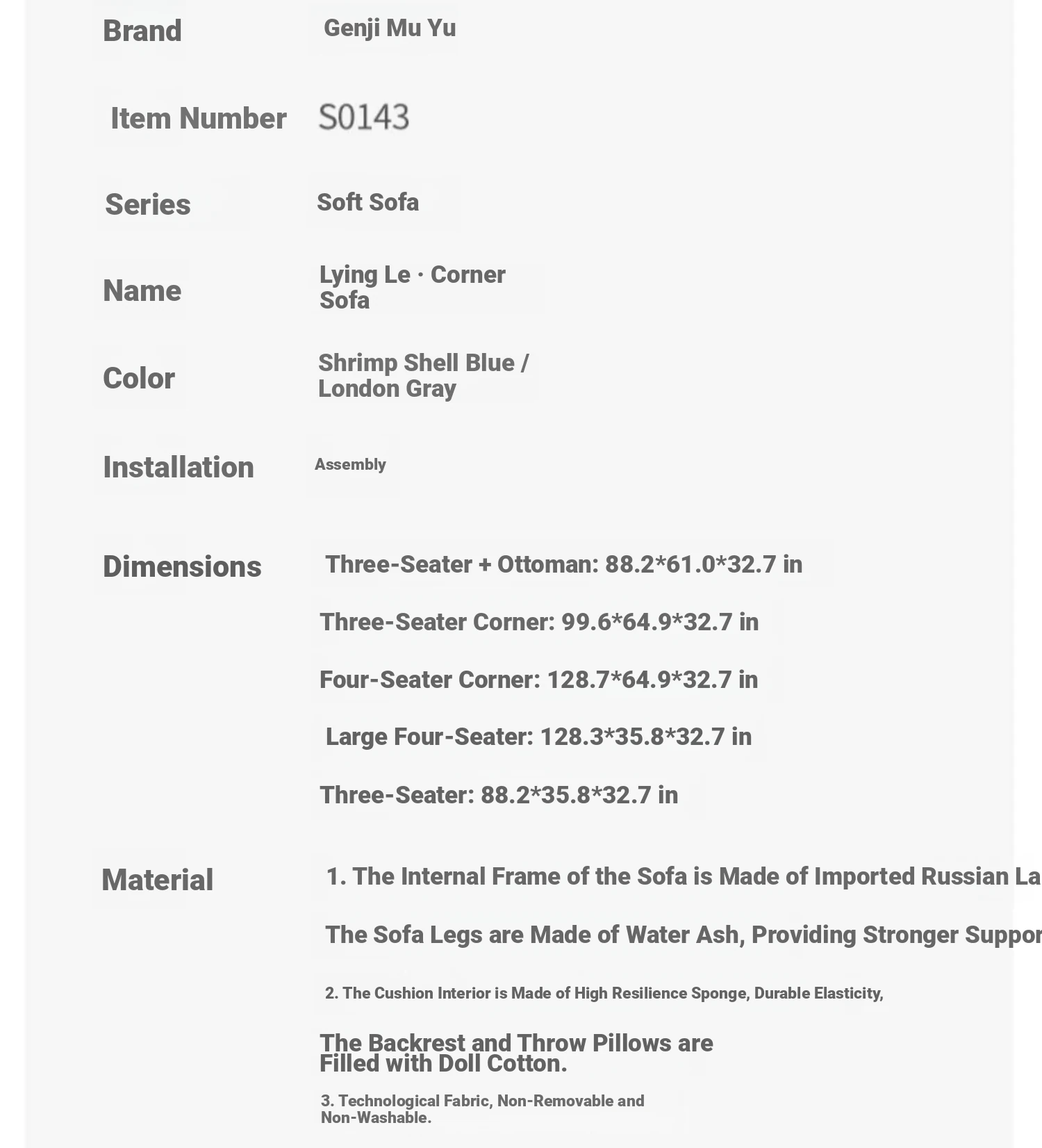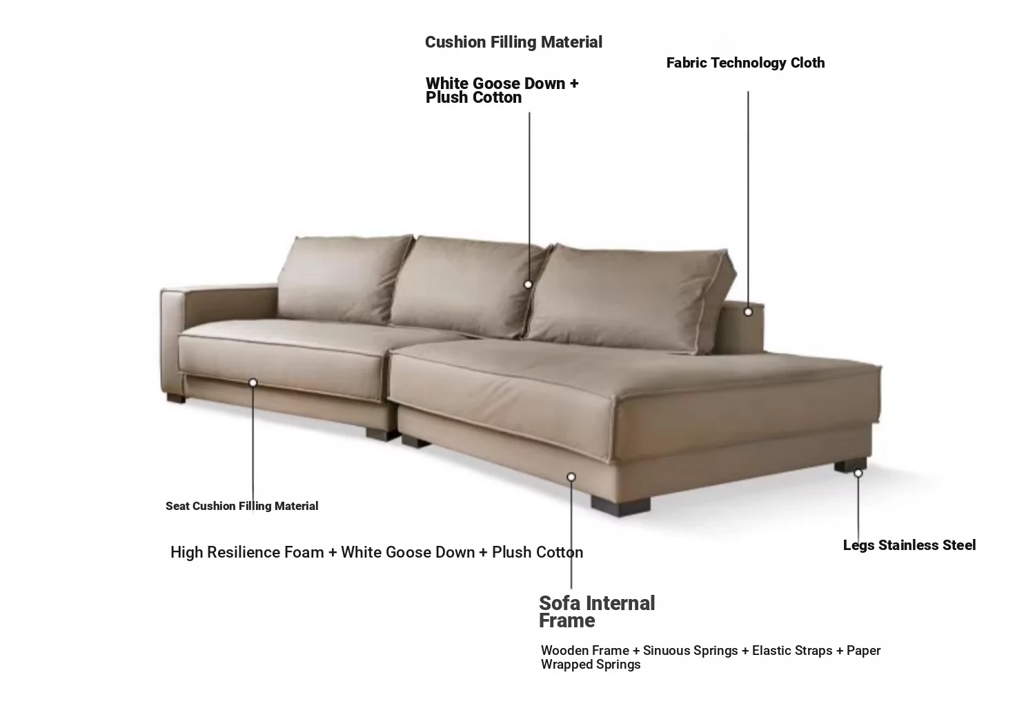 S0158 Corner Sofa (Three-Person Corner Right Imperial Concubine) Glutinous Rice White (Three Preventions)(111.81in*72.83in*33.86in)