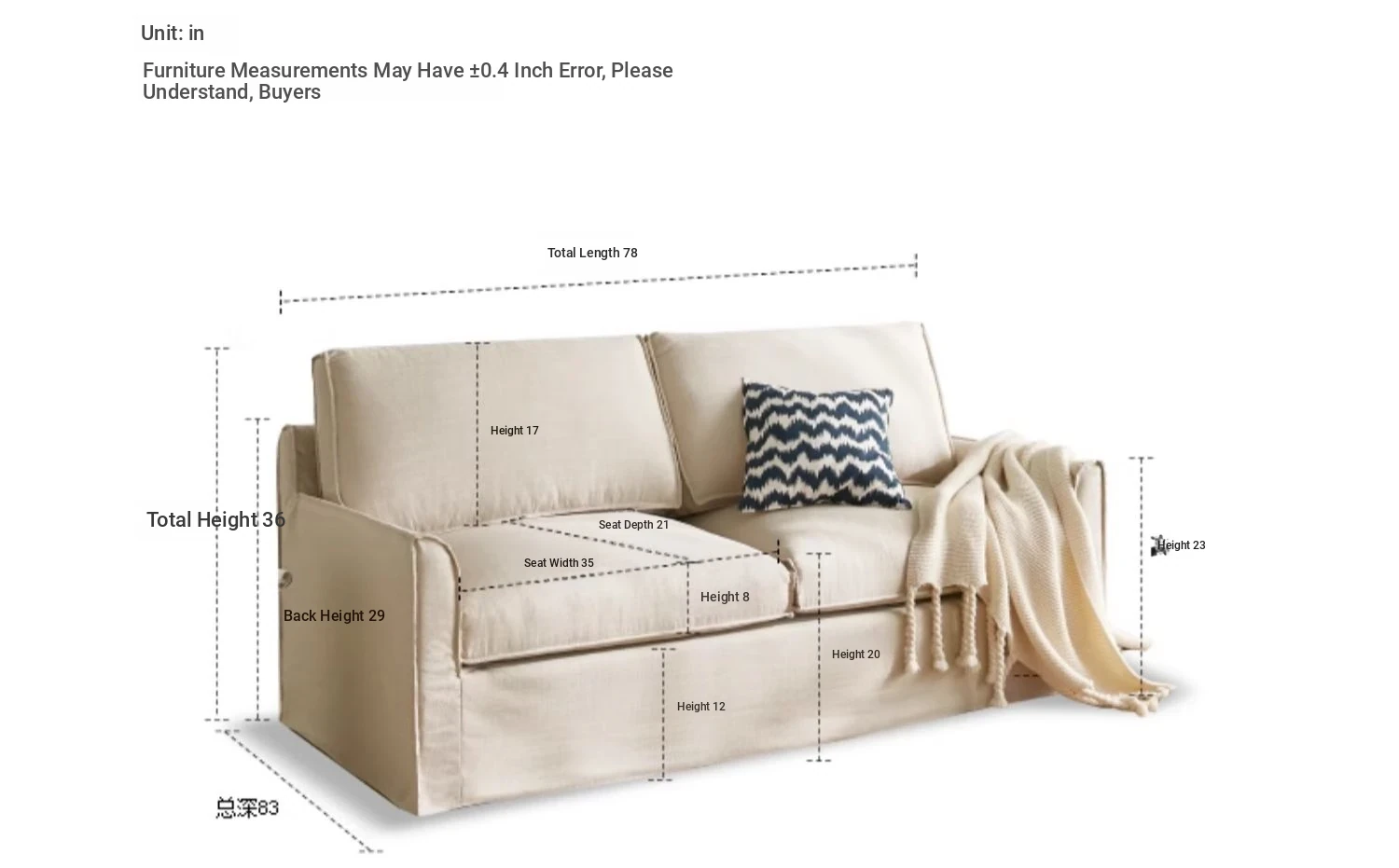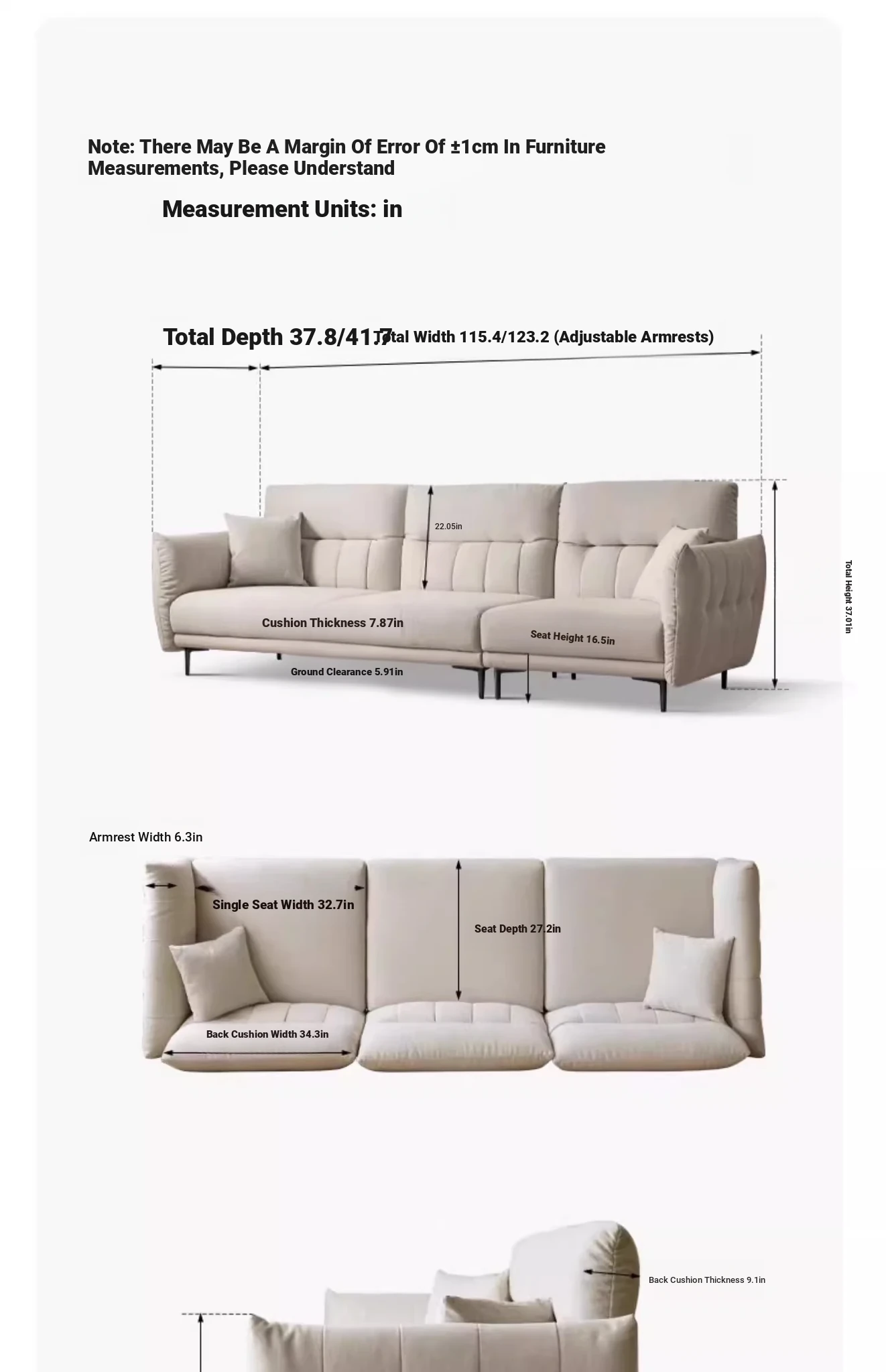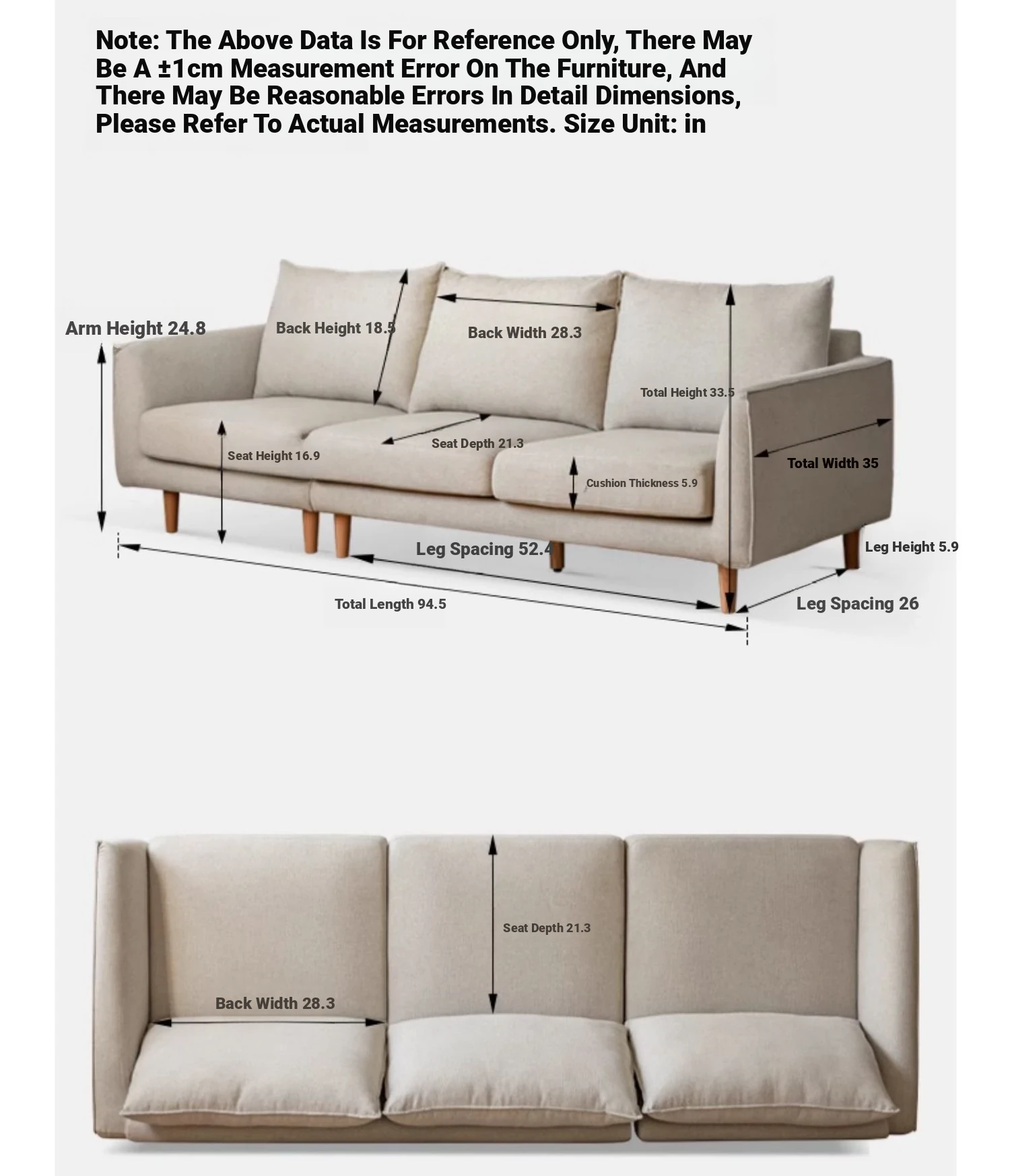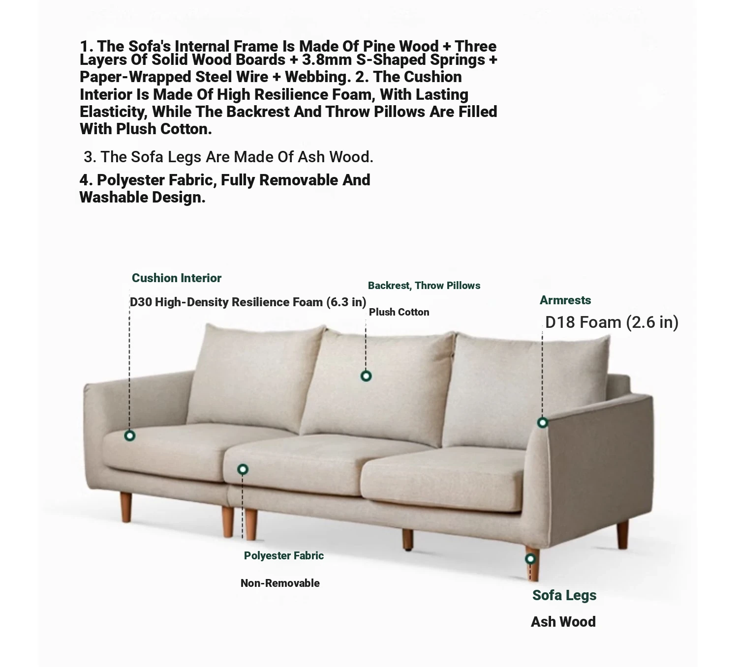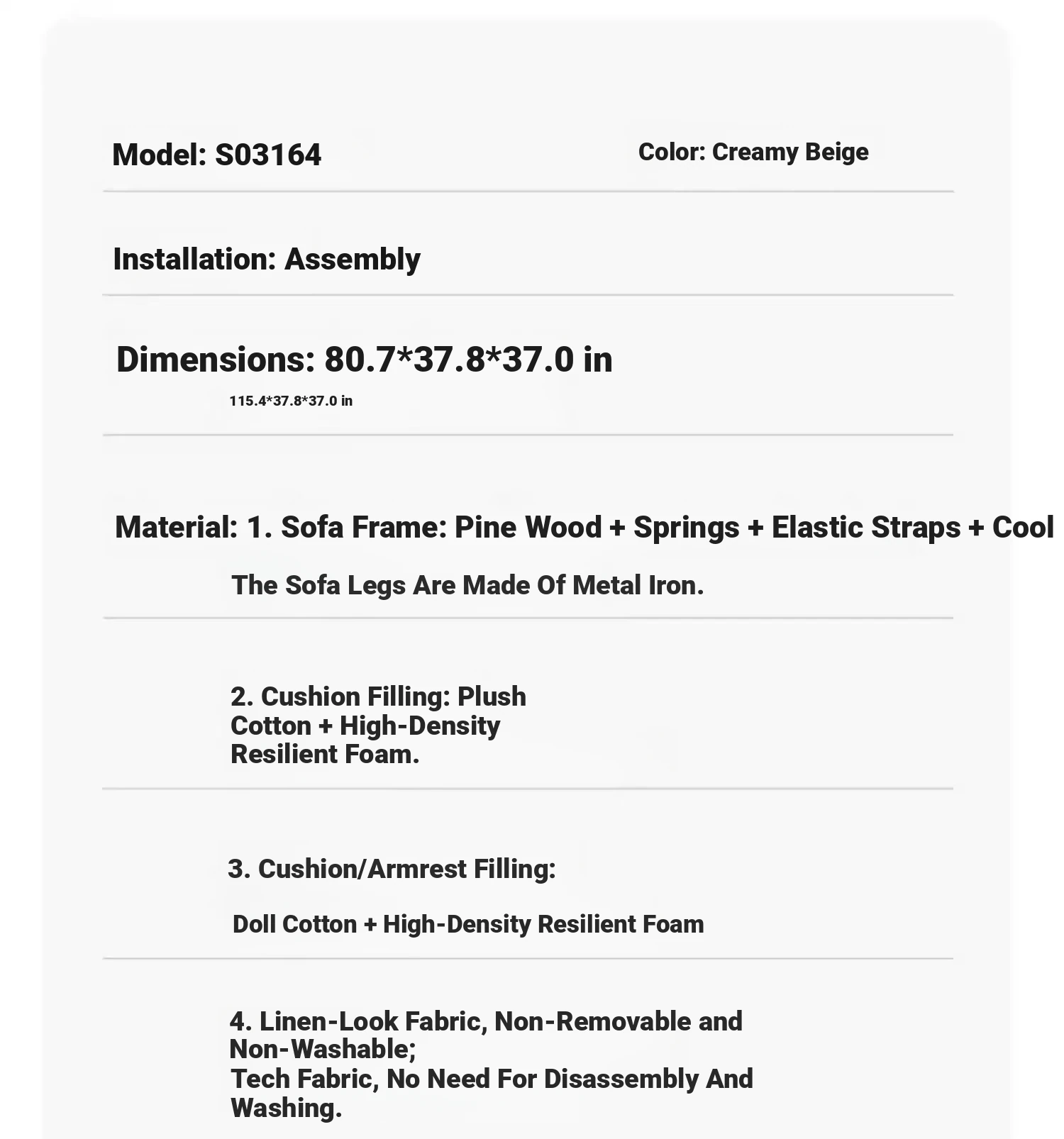 S03164 Sofa Three-person Milk Skin Color (82.68in*43.31in*37.01in)