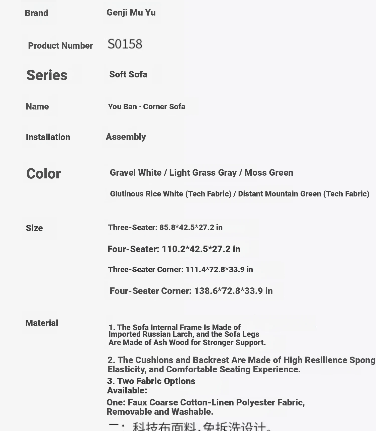 Genji Mu Yu Modern Minimalist Fabric Corner Sofa - Versatile and Comfortable, Perfect for Any Living Room - Clearance Sale!