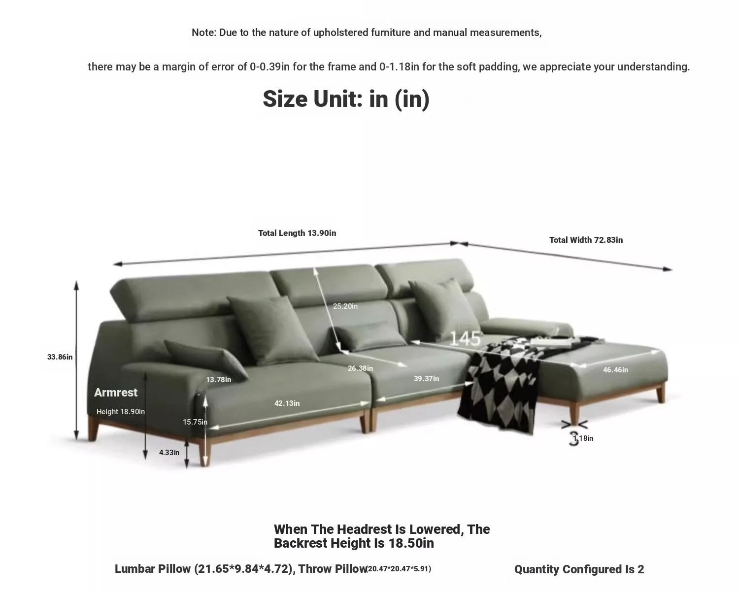 S0158 corner sofa (four-person corner right imperial concubine) Yuanshan Green (three defenses)(138.98in*72.83in*33.86in)