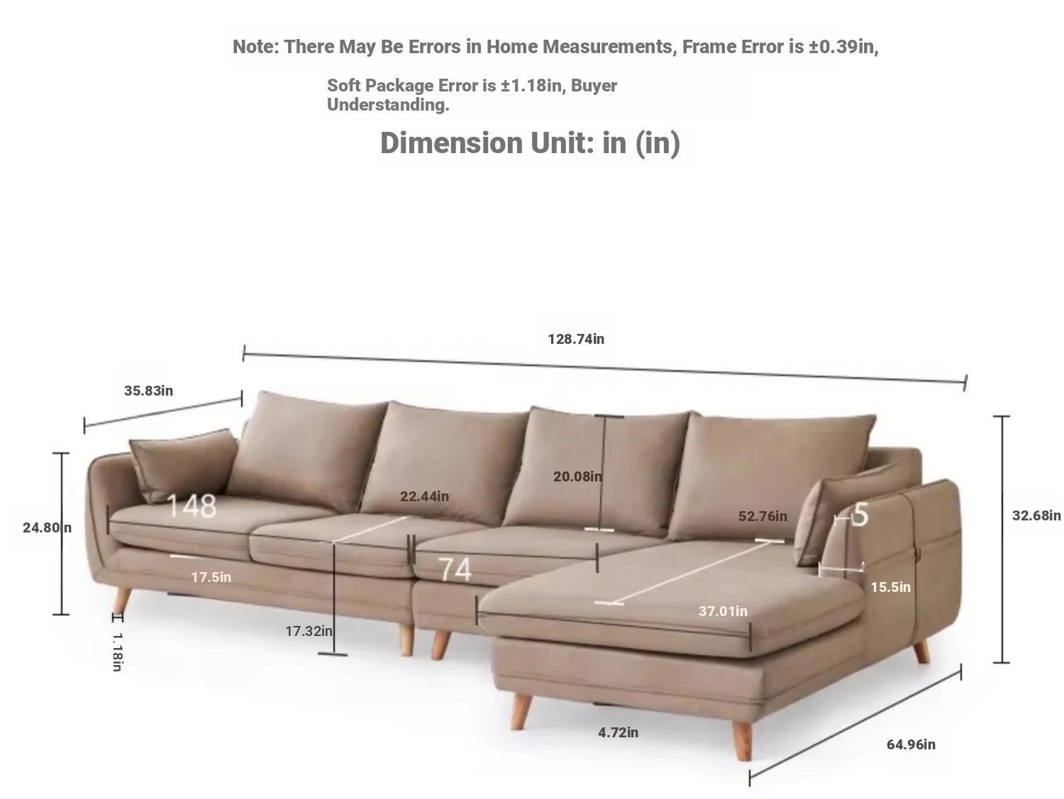 S0158 Corner Sofa (Four-person Corner Right Imperial Concubine) Glutinous Rice White (Three Preventions)(138.98in*72.83in*33.86in)