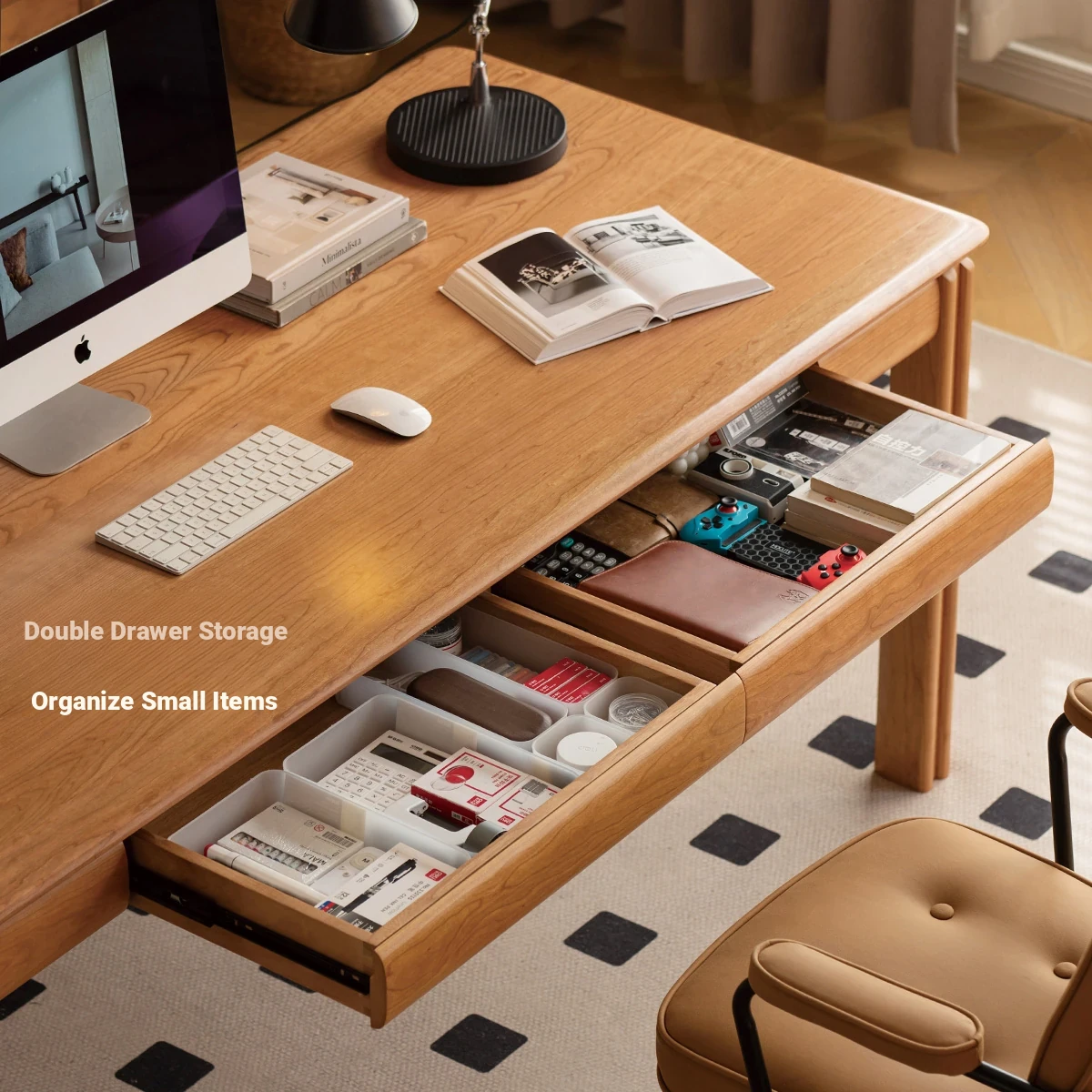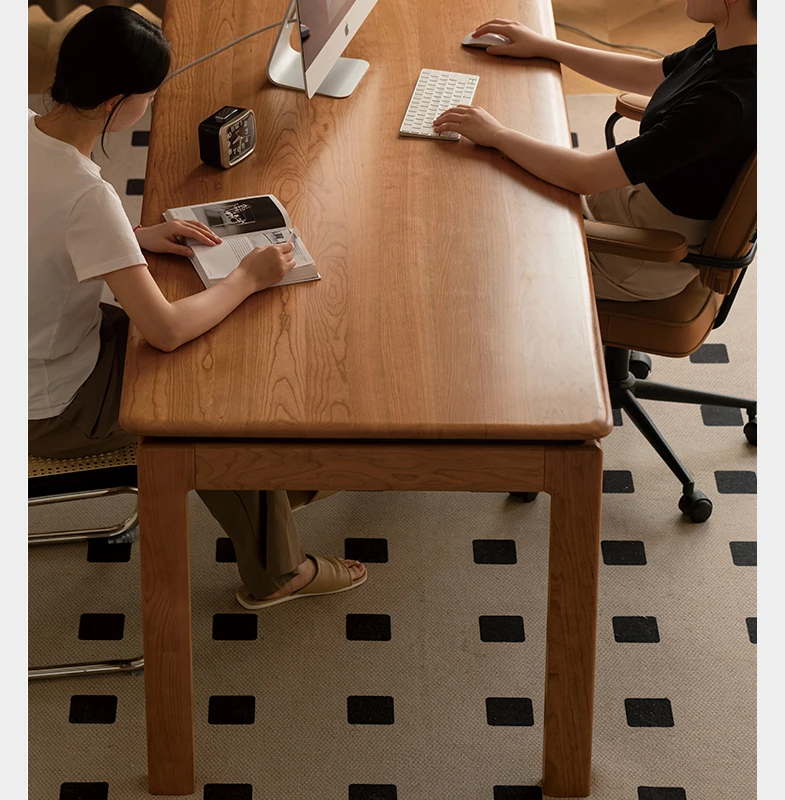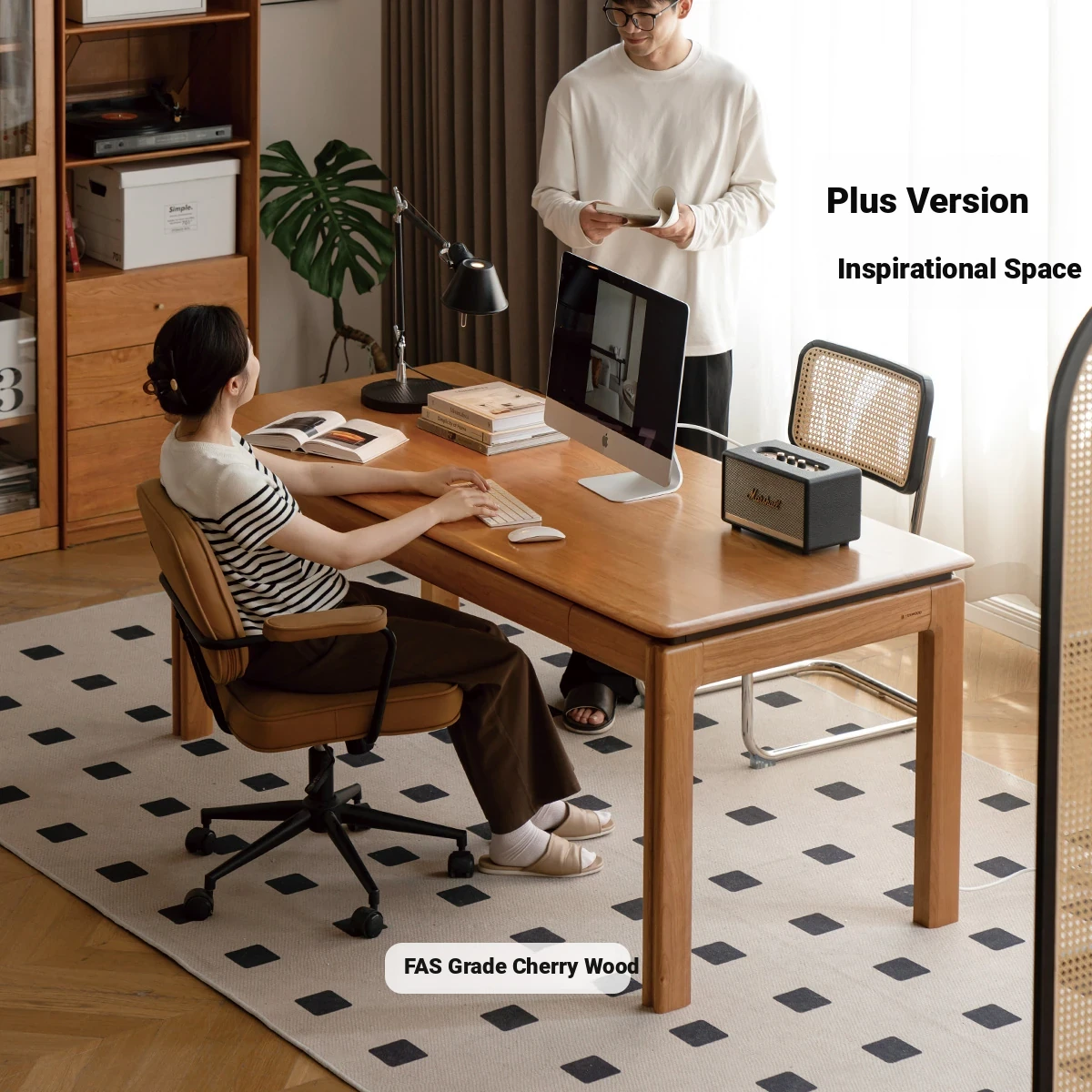 Genji Mu Yu Solid Wood Desk - Spacious Cherry Wood Office Table with Drawers for Home and Work, Perfect for Your Study or Workspace