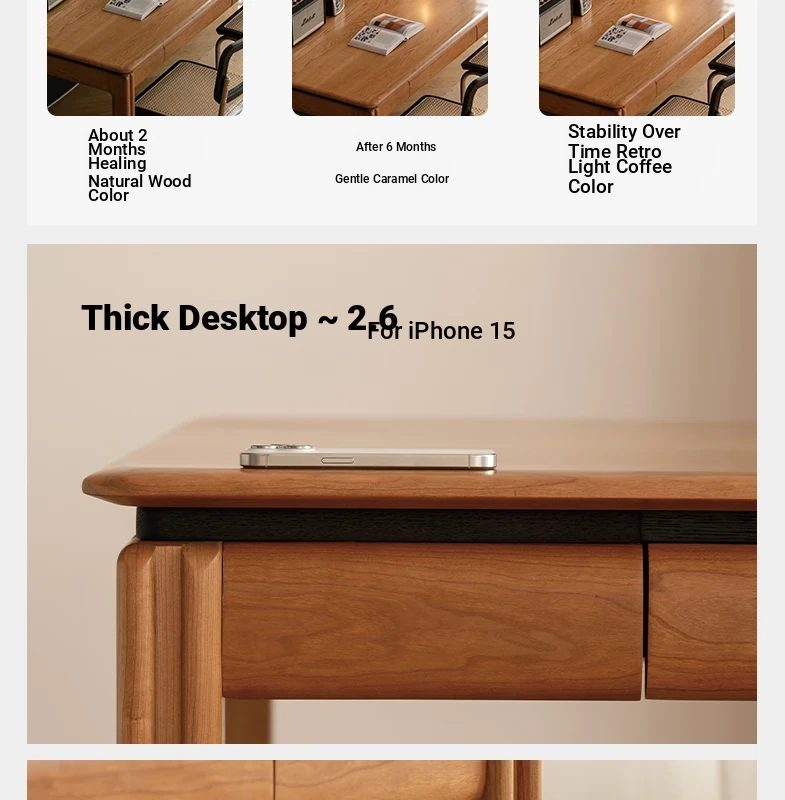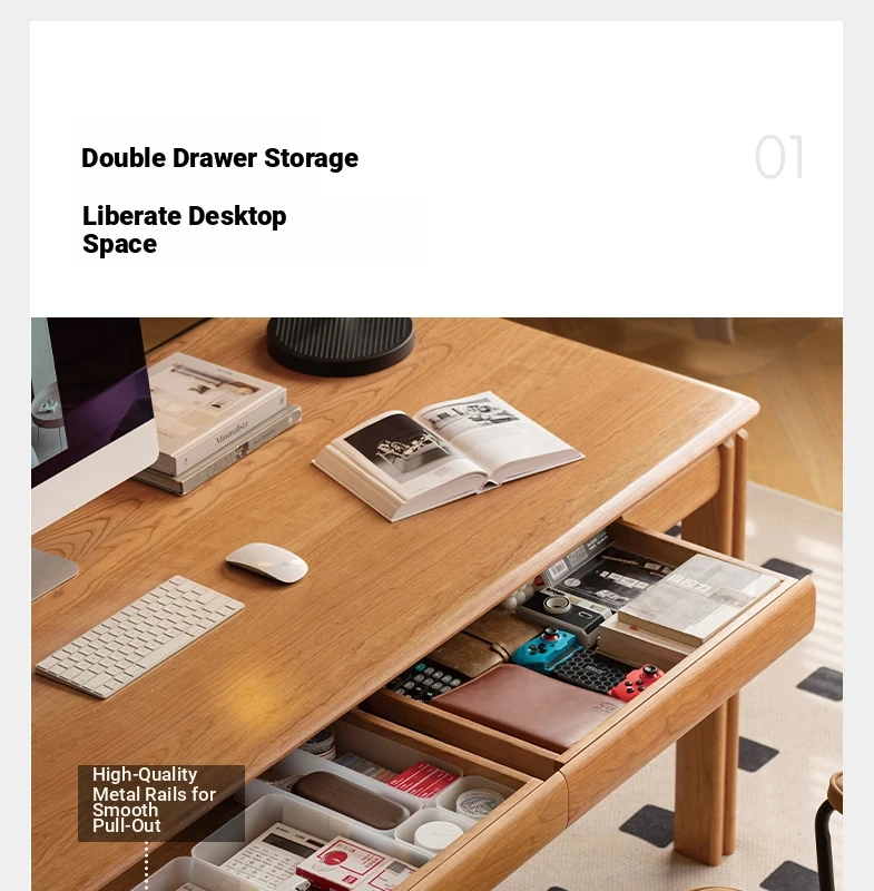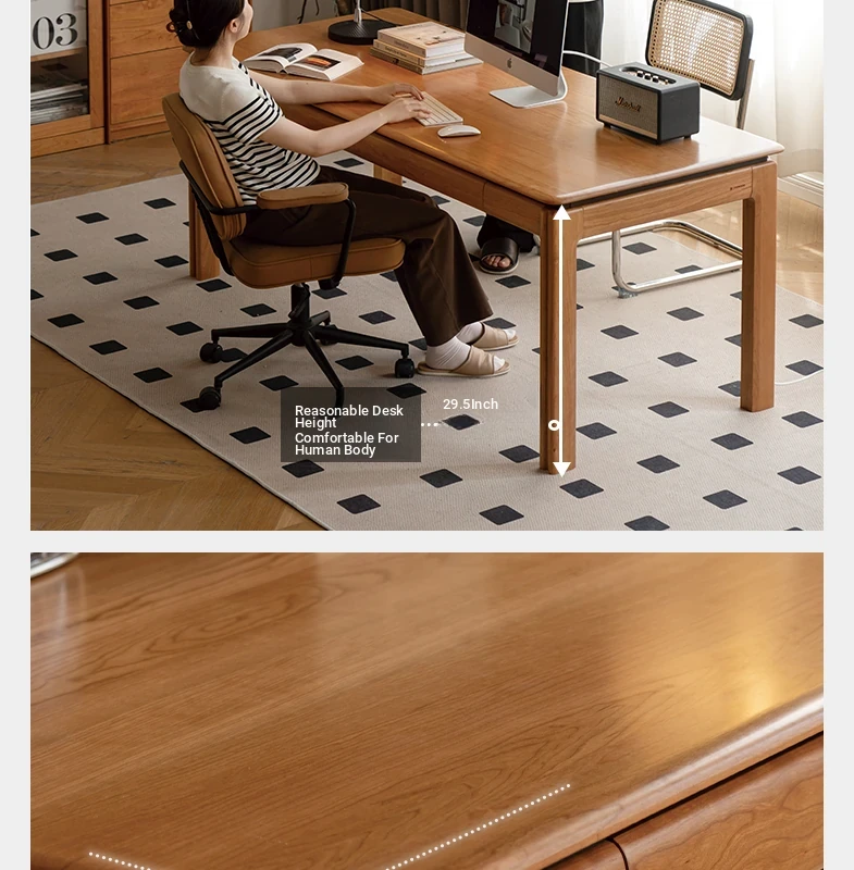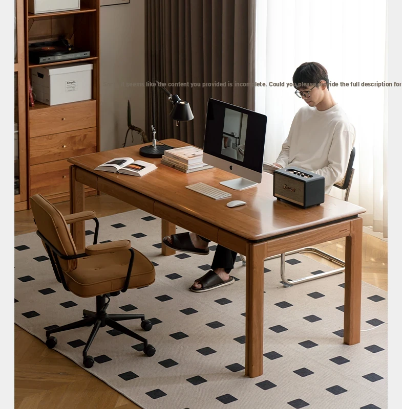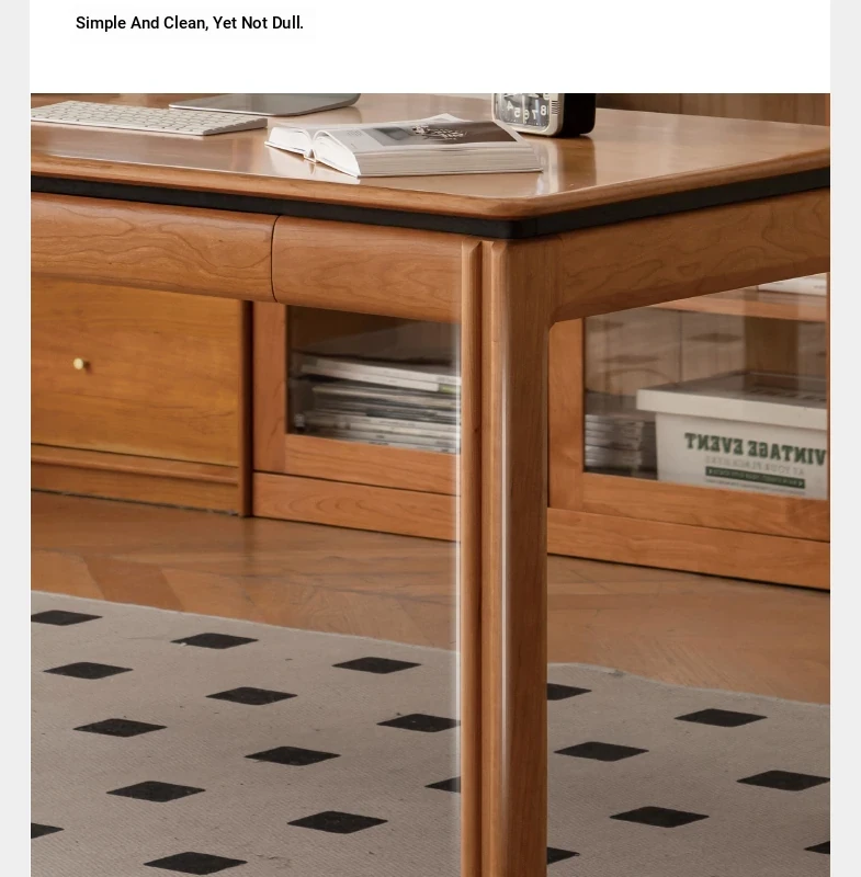 Genji Mu Yu Solid Wood Desk - Spacious Cherry Wood Office Table with Drawers for Home and Work, Perfect for Your Study or Workspace