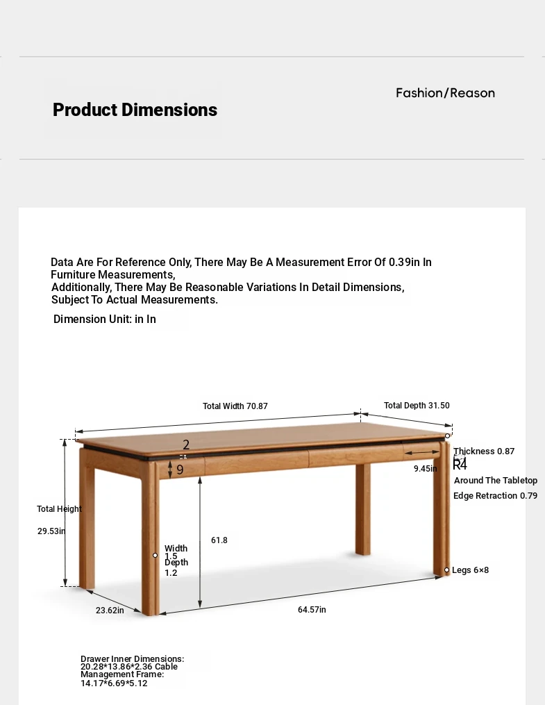 70.87 in desk (70.87in*31.50in*29.53in)Y102X20