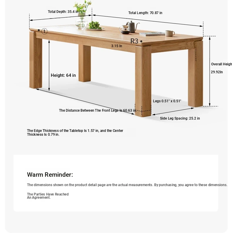 (Log color) 62.99 in dining table (62.99in*35.43in*29.92in)Y06R01