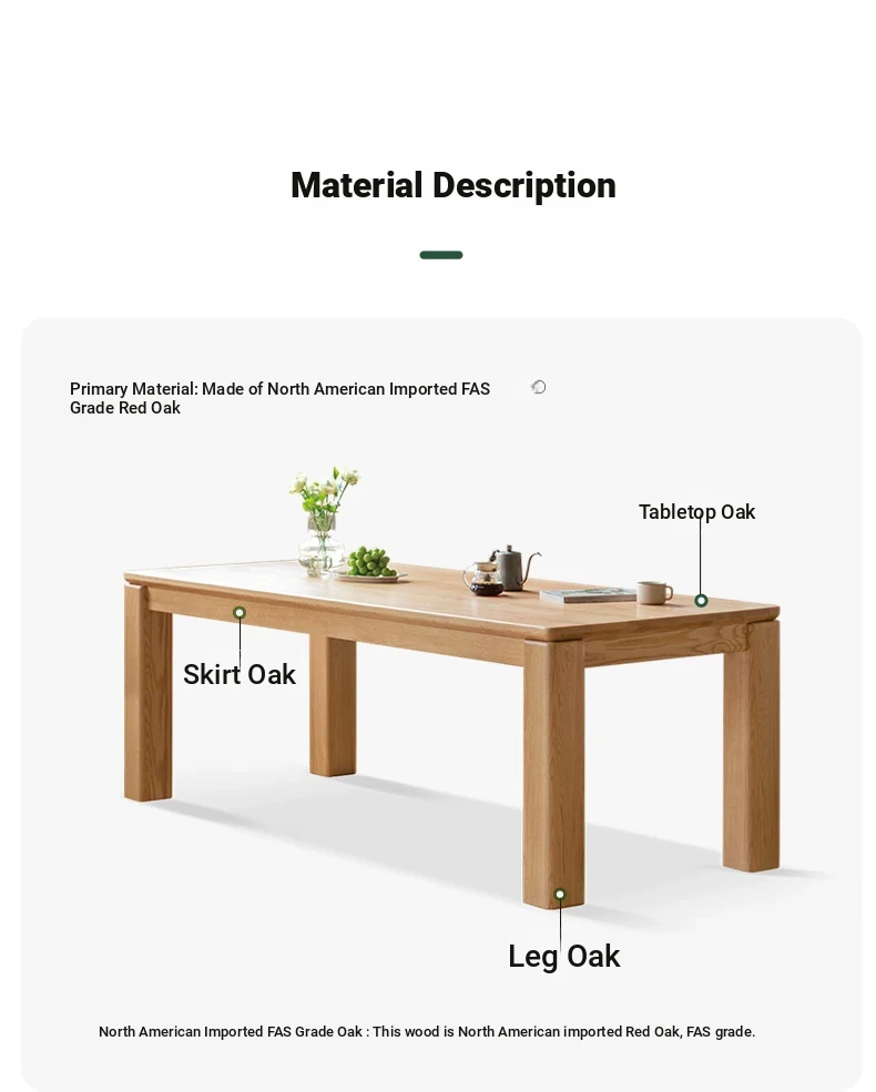 Genji Mu Yu Solid Wood Dining Table - Nordic Oak Modern Minimalist Large Family Table for Home Use