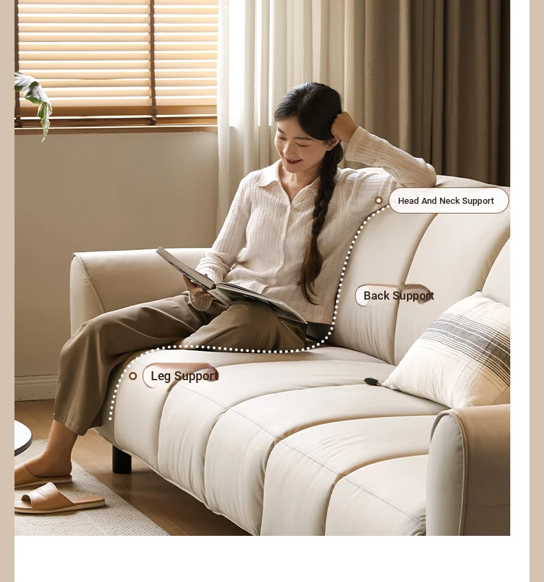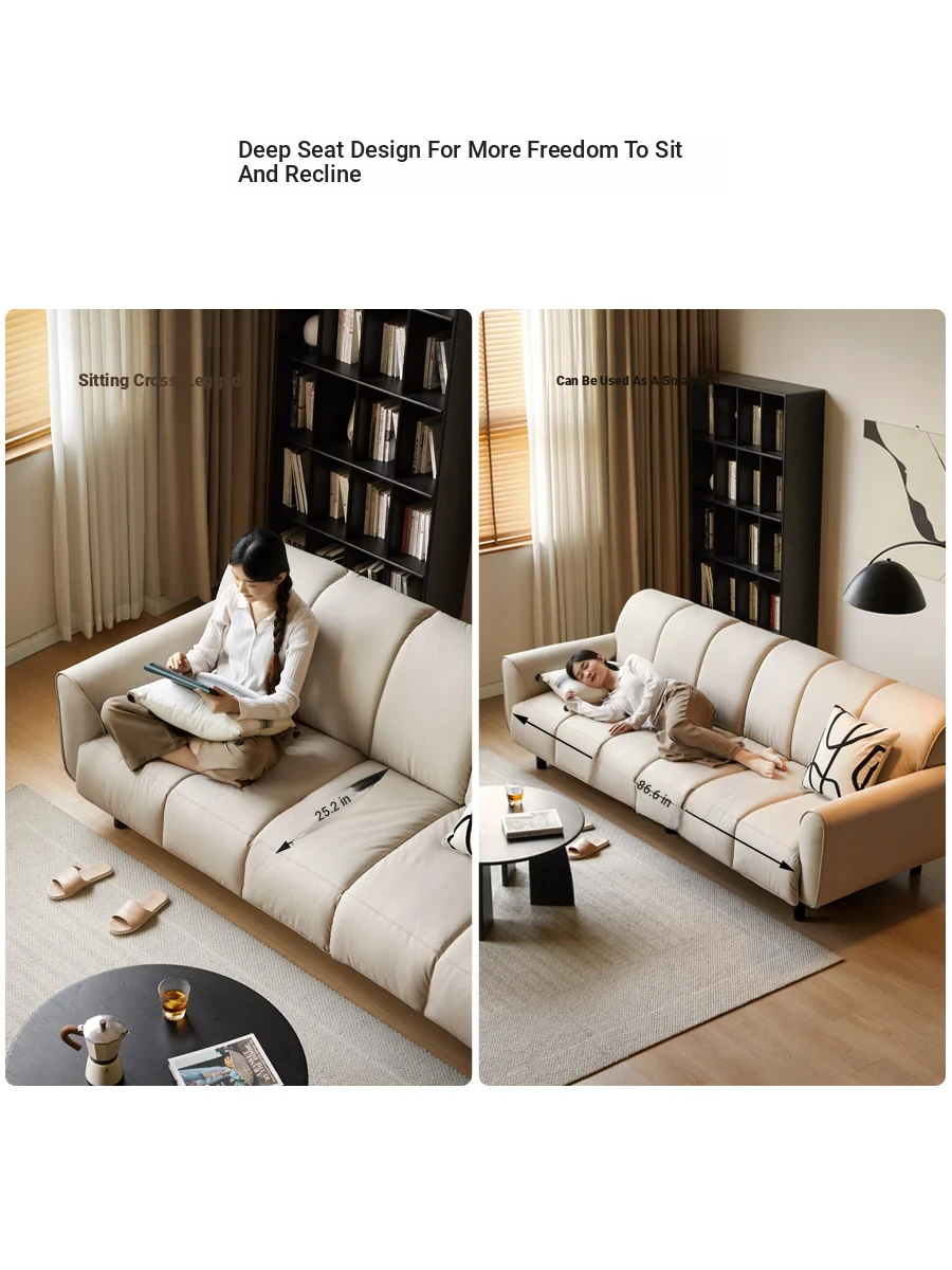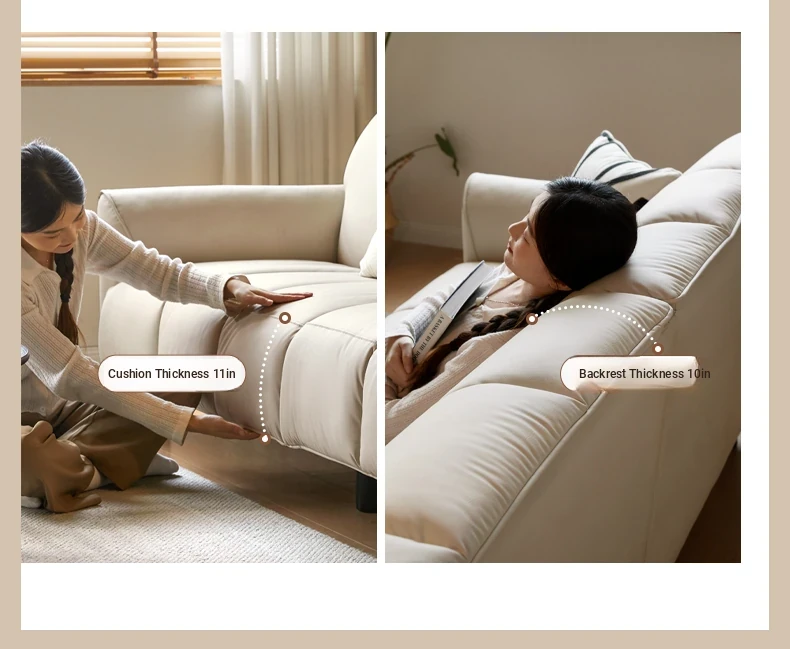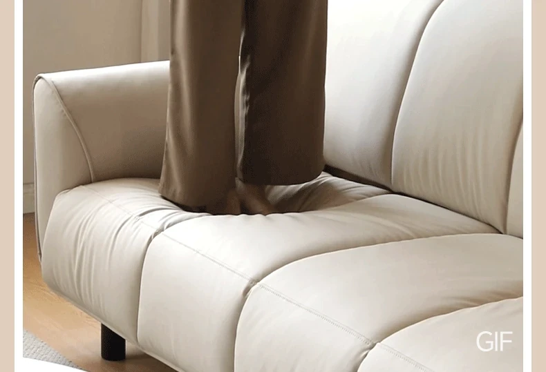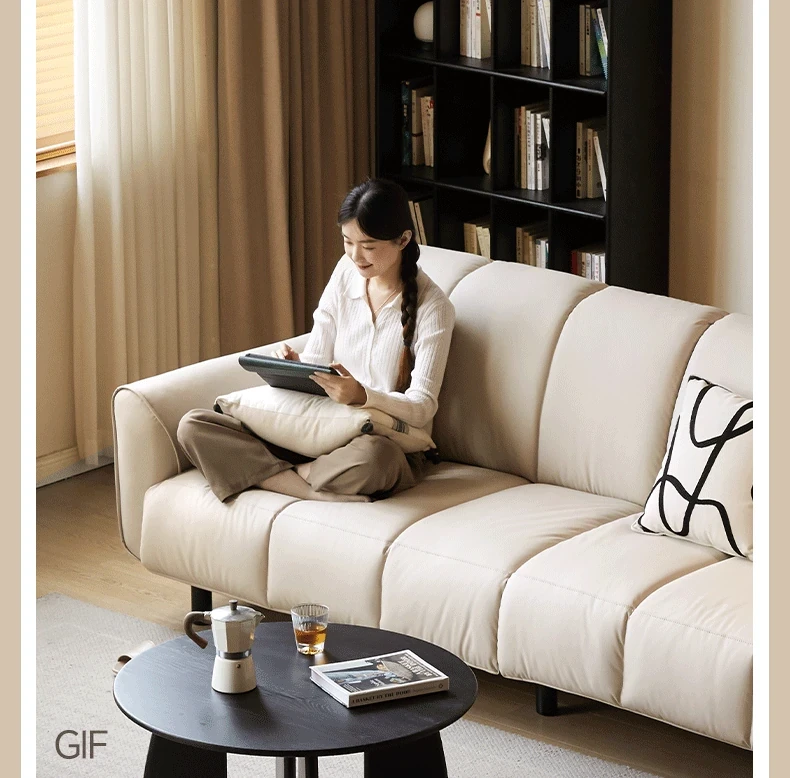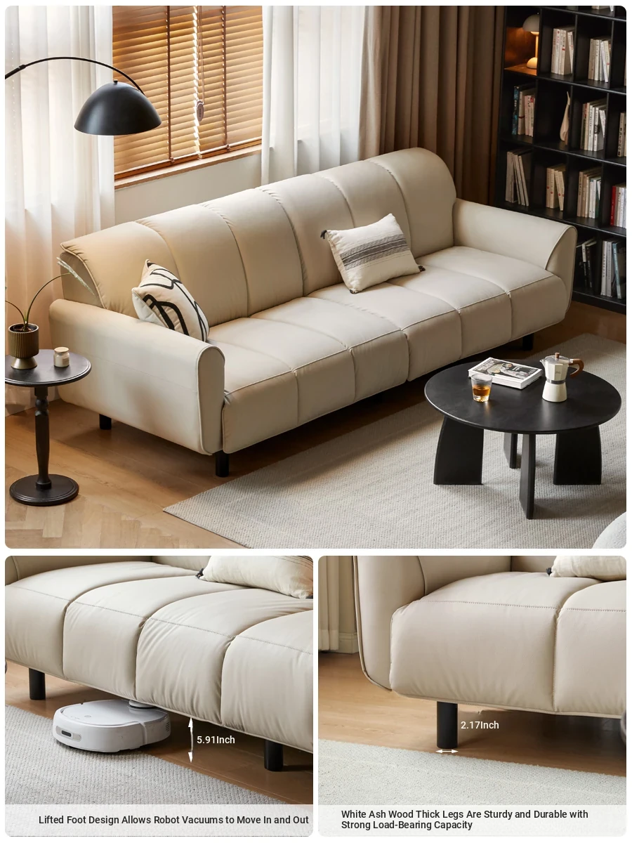 Genji Mu Yu White Cream Fabric Sofa - Stylish Straight Sofa for Small Spaces, Perfect for Your Living Room, Featuring Cozy Down Filling for Ultimate Comfort
