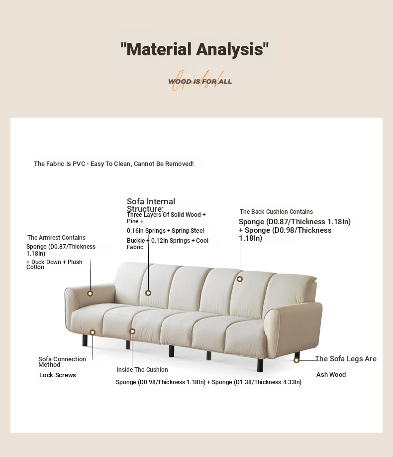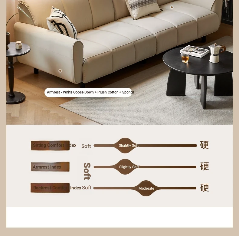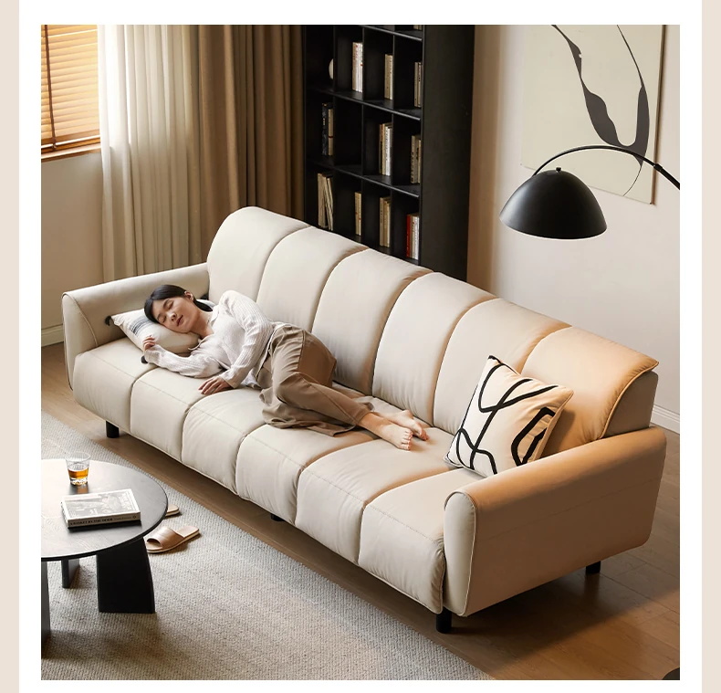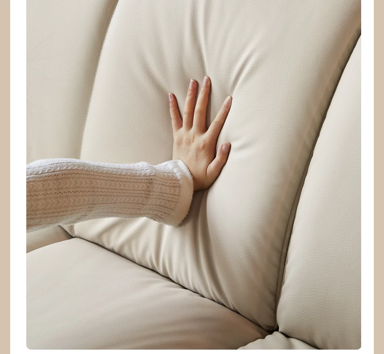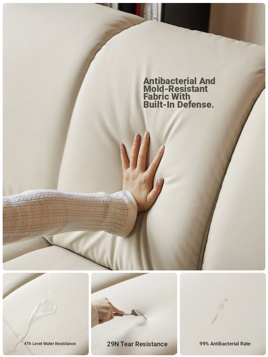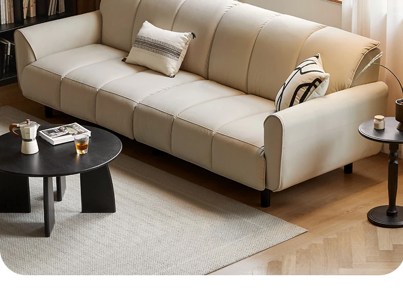 Genji Mu Yu White Cream Fabric Sofa - Stylish Straight Sofa for Small Spaces, Perfect for Your Living Room, Featuring Cozy Down Filling for Ultimate Comfort