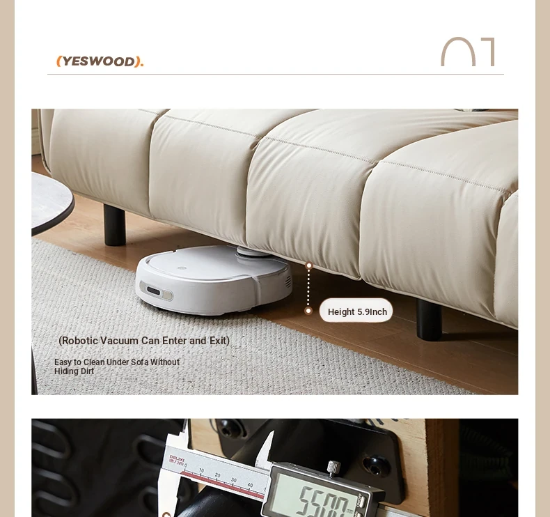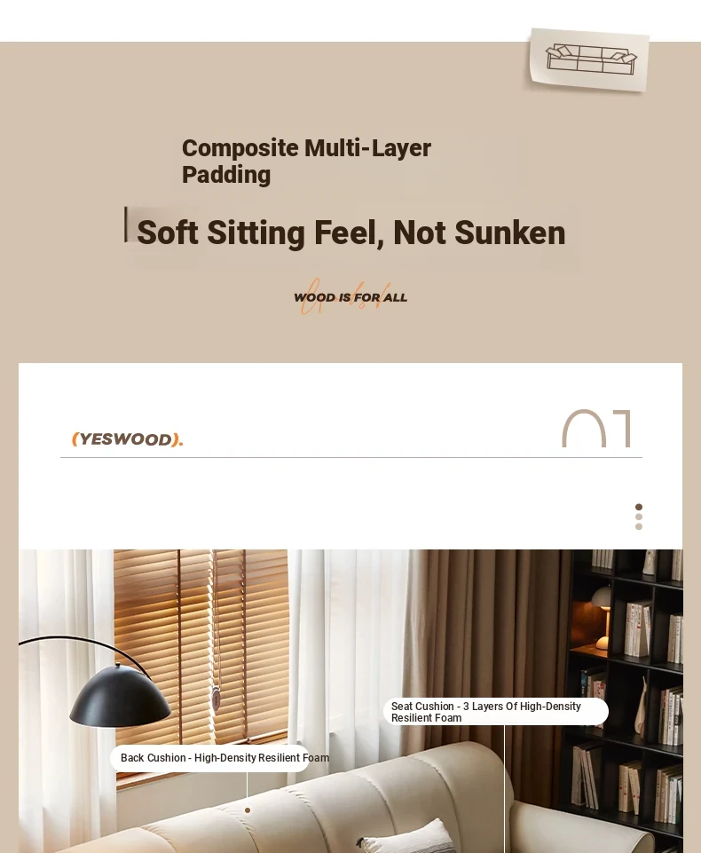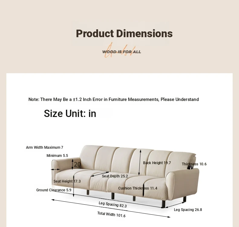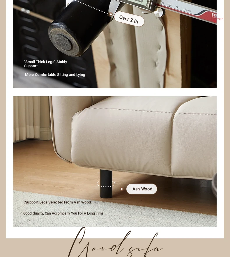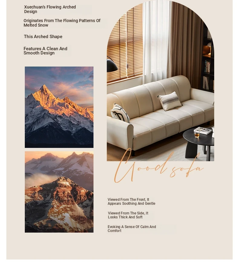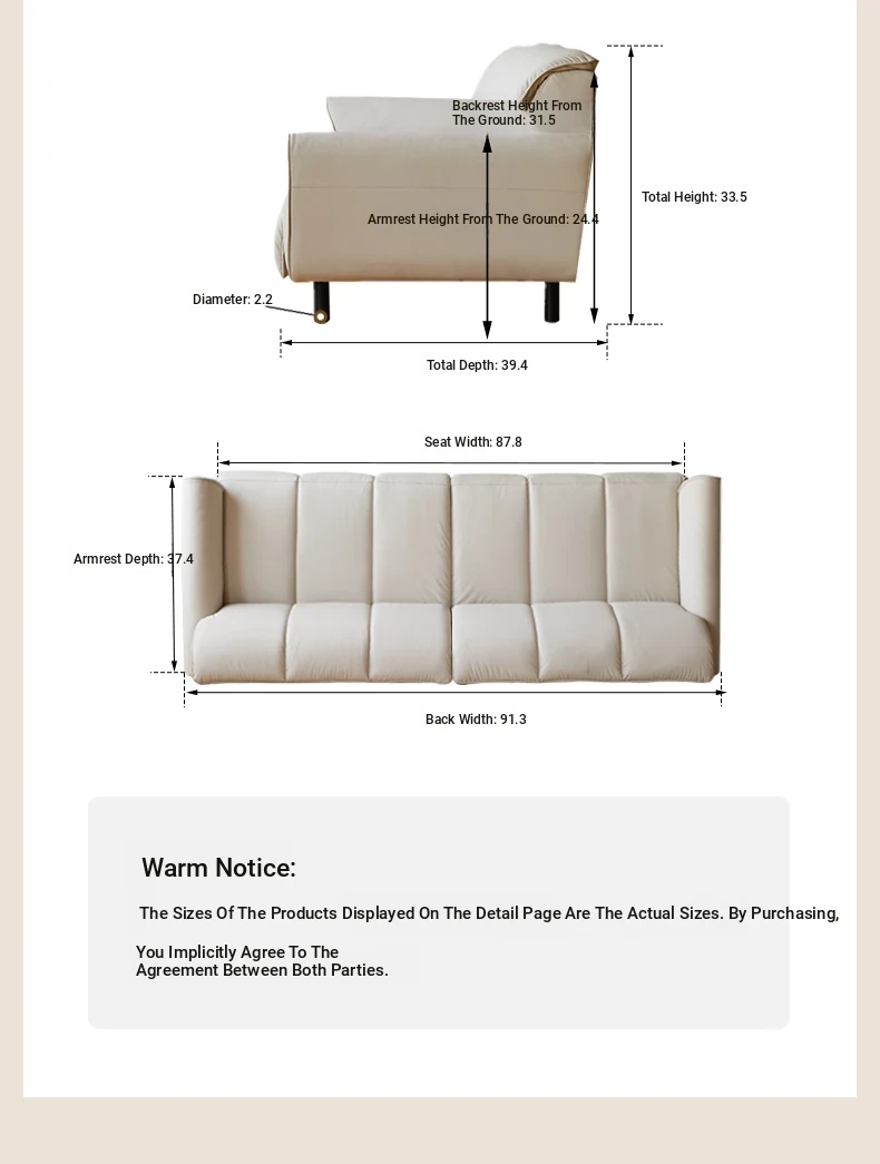 Genji Mu Yu White Cream Fabric Sofa - Stylish Straight Sofa for Small Spaces, Perfect for Your Living Room, Featuring Cozy Down Filling for Ultimate Comfort