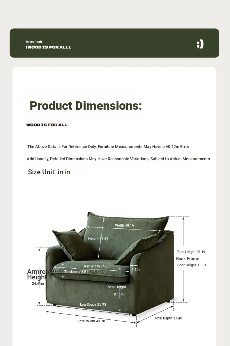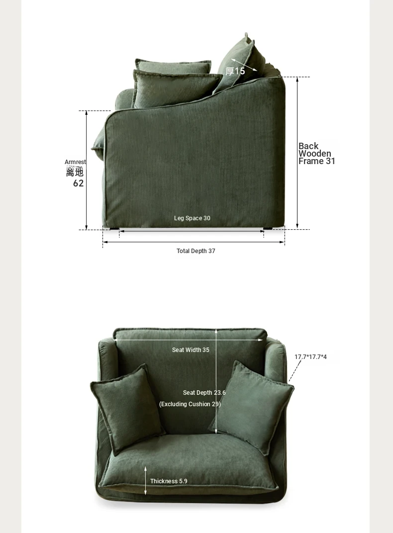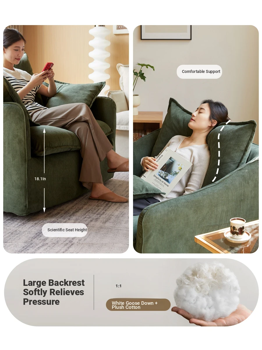 43.70 in sofa chair (corduroy pine needle Green)(43.70in*37.40in*38.19in)S05200